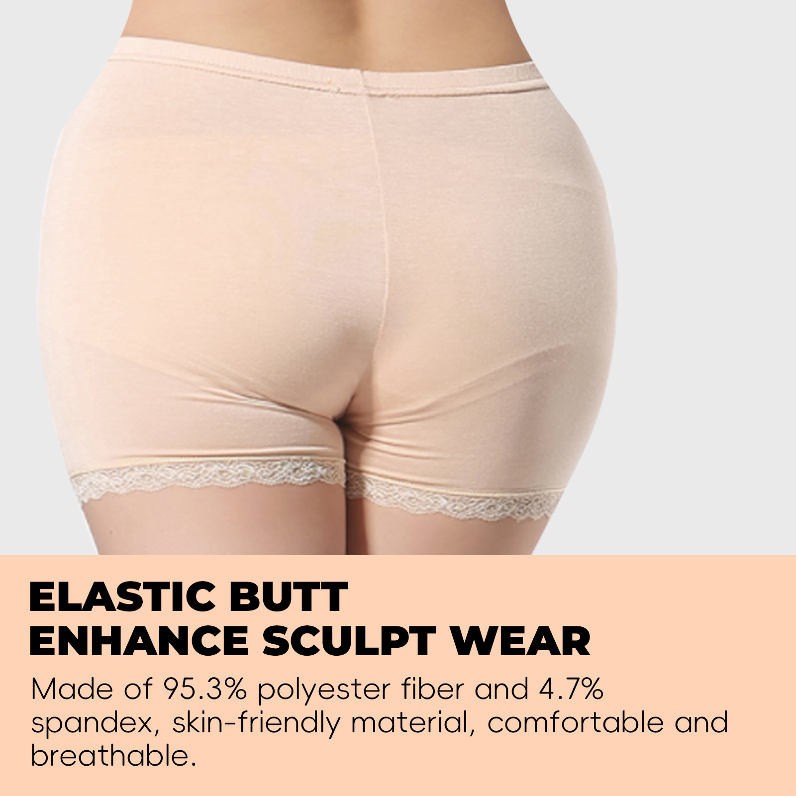 我们的弹性美体裤含有聚酯纤维95.3%、氨纶4.7%。它可以让您的腹部更加光滑苗条,让您在穿衣方面更加自信,有助于立即提升臀部,让您的臀部看起来更大、更性感。它的使用方法很简单:只需将本品穿在裙子或裤子里即可。本品具有有效的瘦身和紧致效果,让您的身材更加完美。