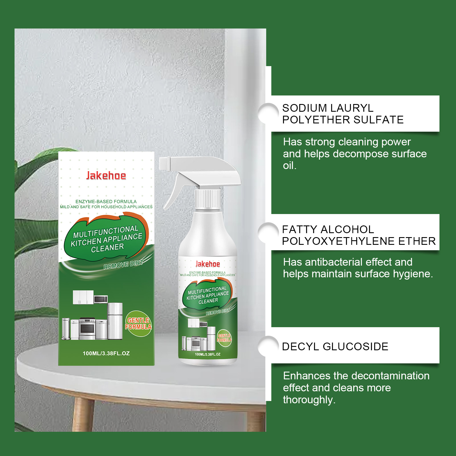 我们的厨房电器清洁剂,由1,2-己二醇,脂肪酶精心调配而成。专为立即渗透顽固油渍并快速分解油脂和污垢设计。使用方法极为便捷:1.擦去电器表面的灰尘。2.在油渍区域均匀喷洒。3.等待一段时间,然后用布轻轻擦拭。并且它含有护手成分,保护皮肤免受损伤。