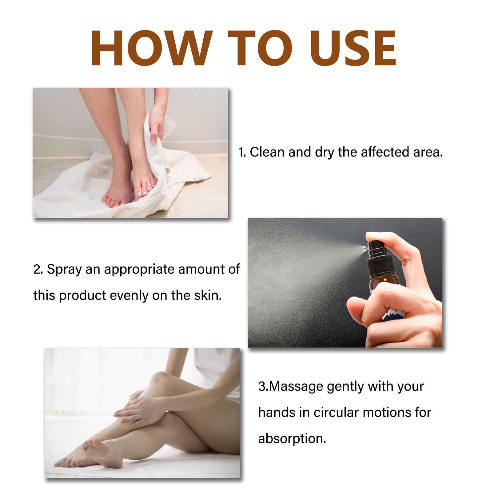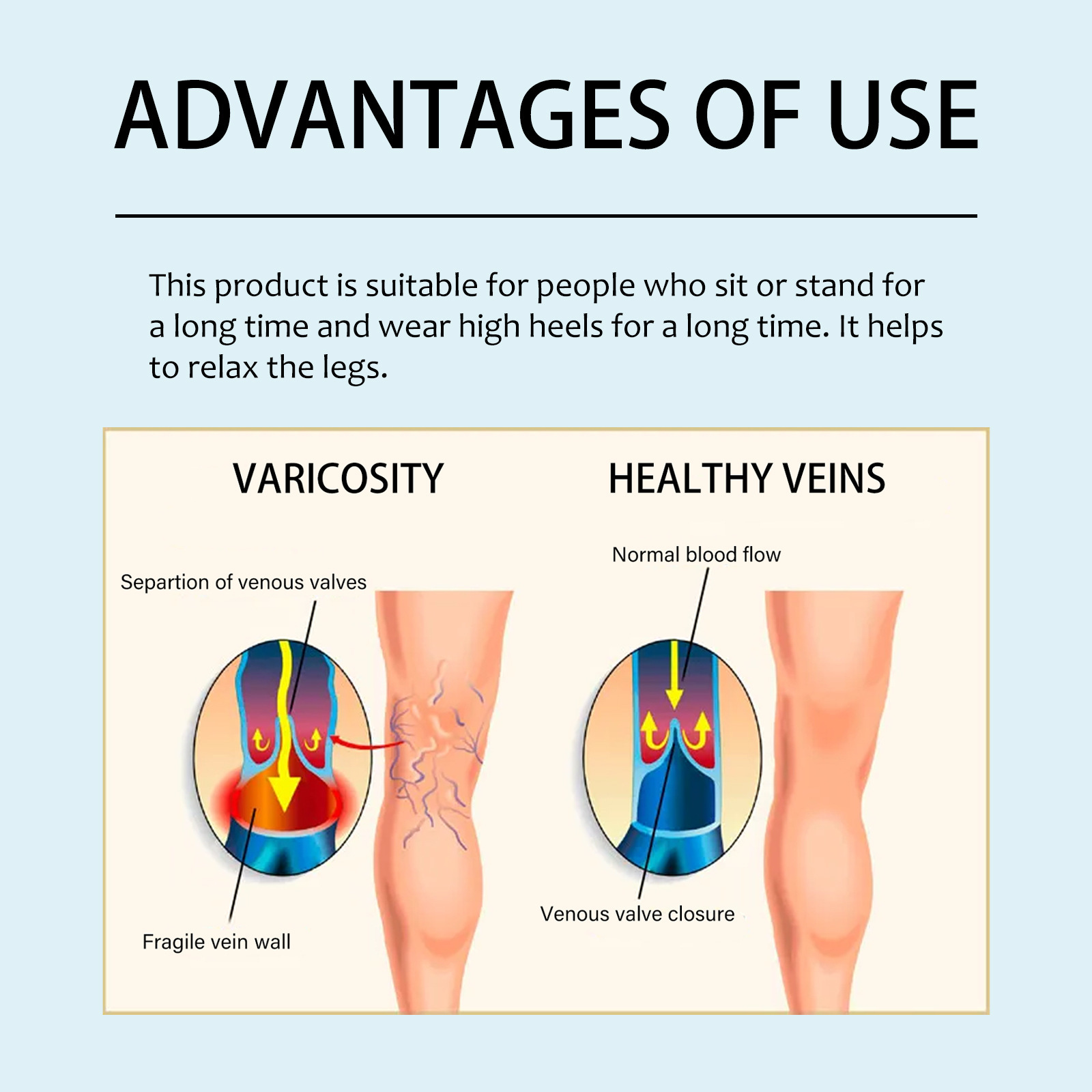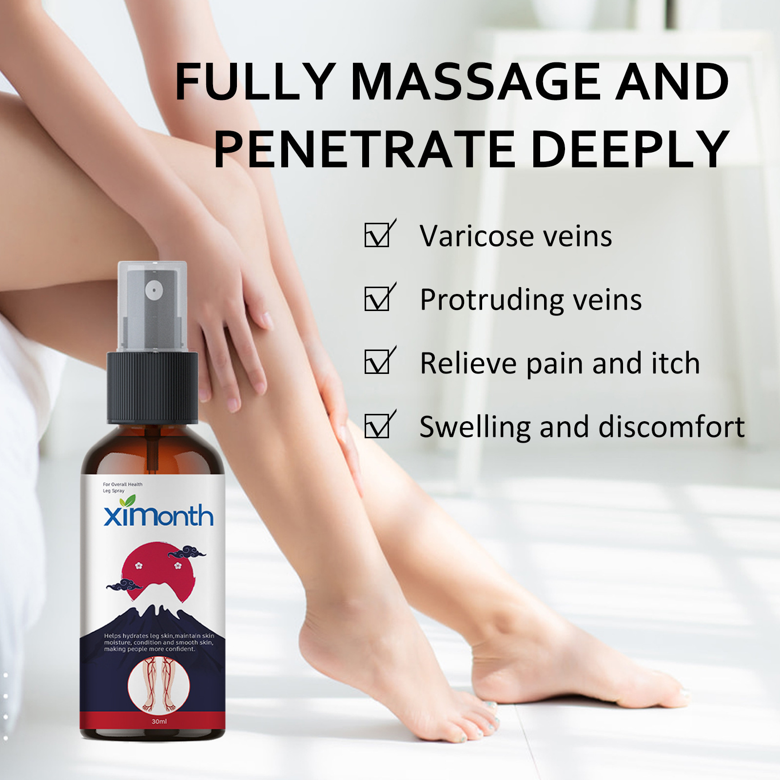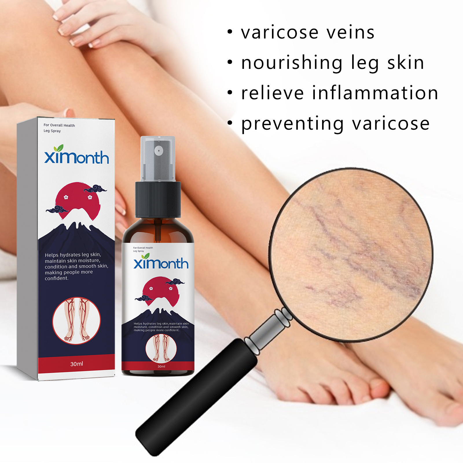 我们的静脉喷雾含有迷迭香油、芦荟提取物、山金车油。它可以缓解静脉曲张,滋养腿部肌肤,消炎,预防静脉曲张。它的使用方法很简单:清洁并擦干患处。取适量本品均匀喷于皮肤上。用手做圆周运动,轻轻按摩以吸收。舒缓不同程度的静脉曲张,减少肿胀和不适。