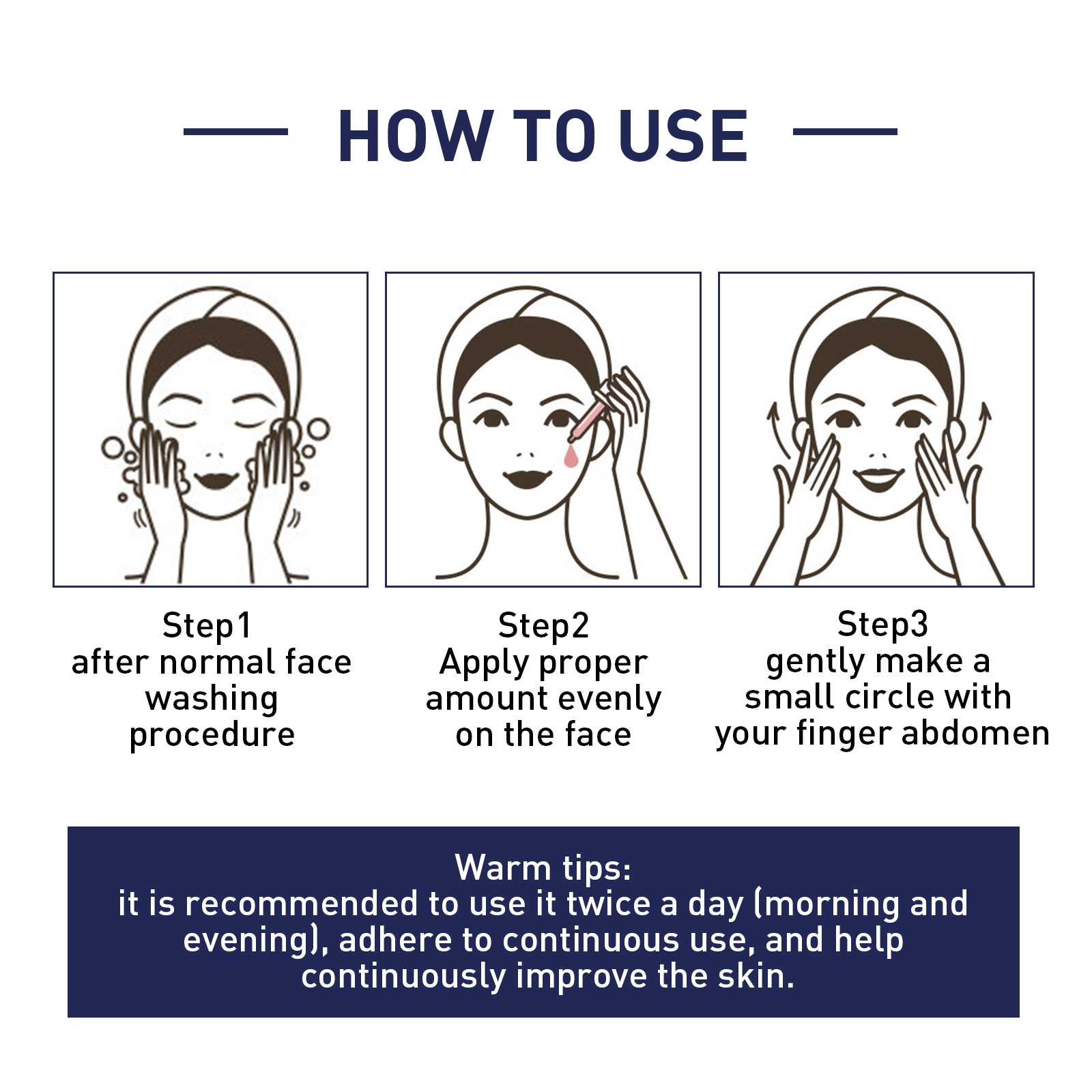 我们的胶原抗衰老精华,由透明质酸、神经酰胺NP、大麦提取物精心调配而成。专为滋润面部肌肤,补充水分设计。使用方法极为便捷:1.在正常的洗脸程序之后;2.取适量均匀涂抹于面部;3.轻轻地用手指在腹部划一个小圈。还可以渗透到面部底部,并长时间保持其水分充足。