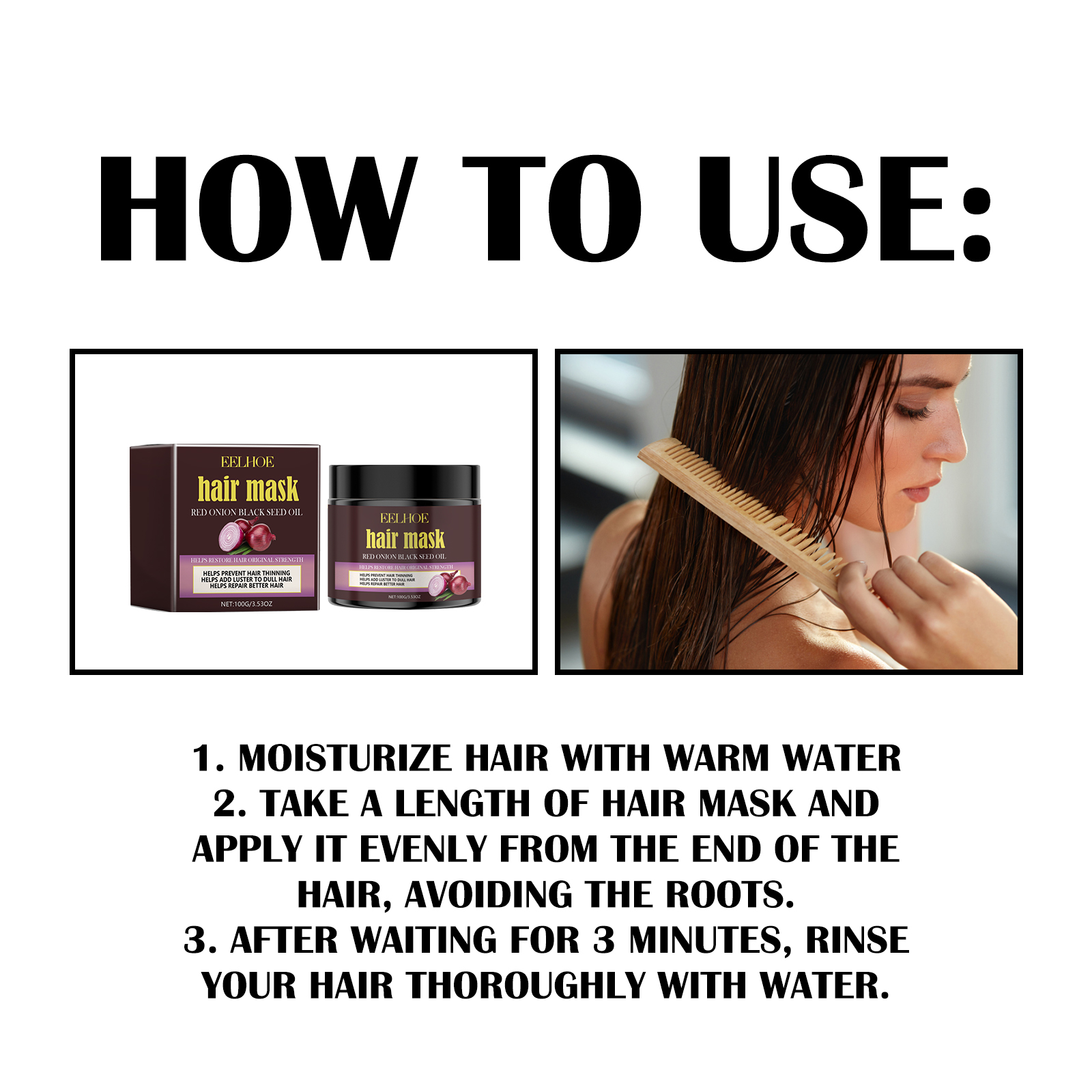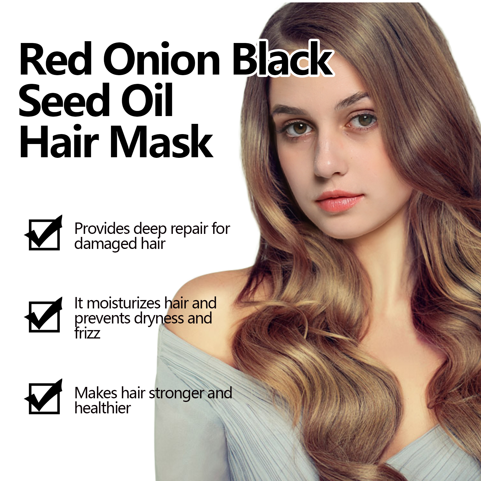 我们的红洋葱黑籽油发膜含有聚二甲基硅氧烷、洋葱鳞茎提取物、栽培黑种草籽油。它可以滋润头发,防止头发干燥和卷曲,使你的头发更柔软。质地清爽不油腻,给您清新舒适的体验。它的使用方法很简单:用温水滋润头发,取一段发膜,从发梢开始均匀涂抹,避开发根,等待3分钟后,冲洗用清水彻底洗净头发。并且可以层修复受损头发。