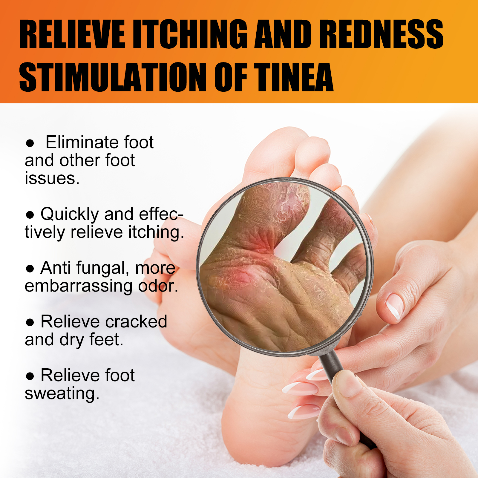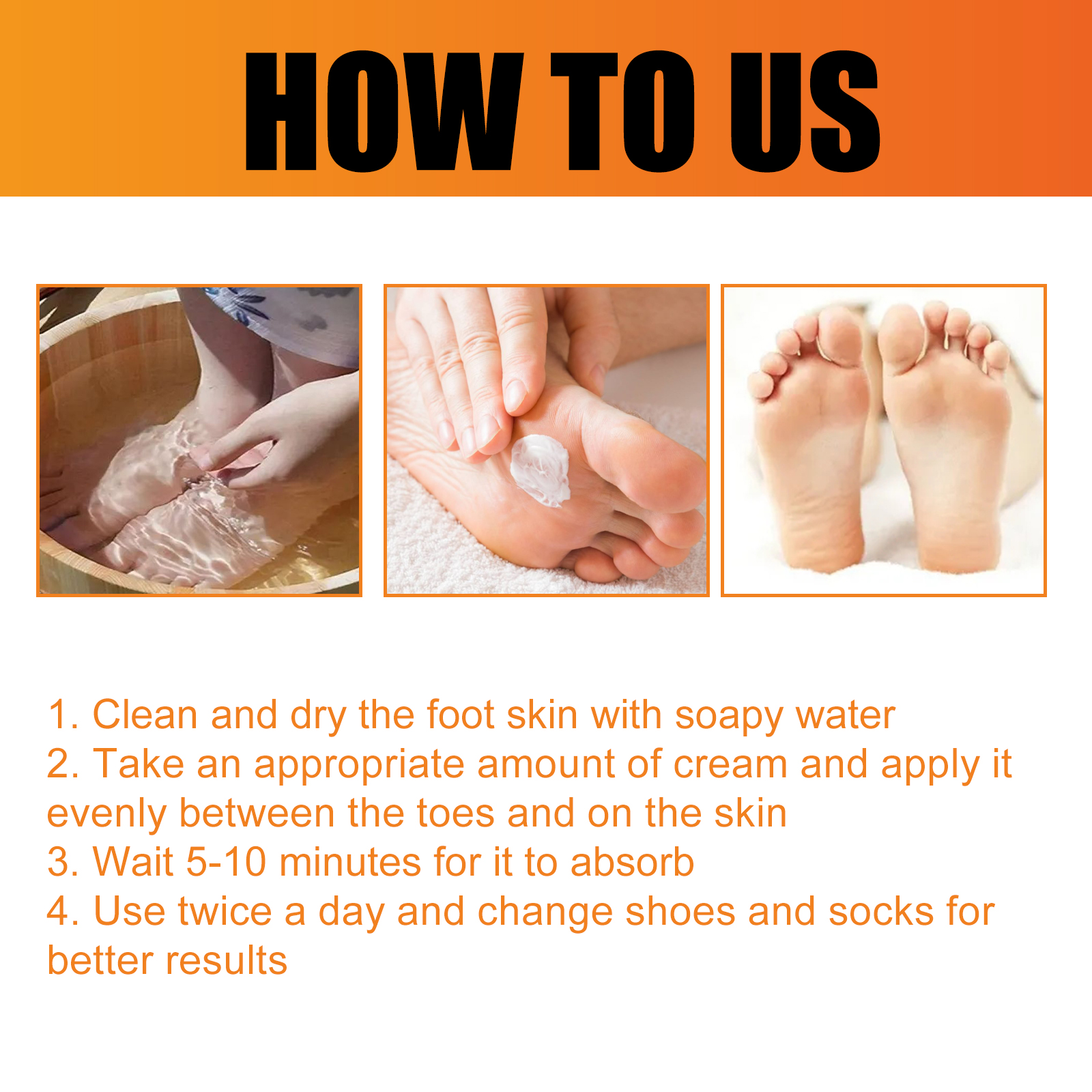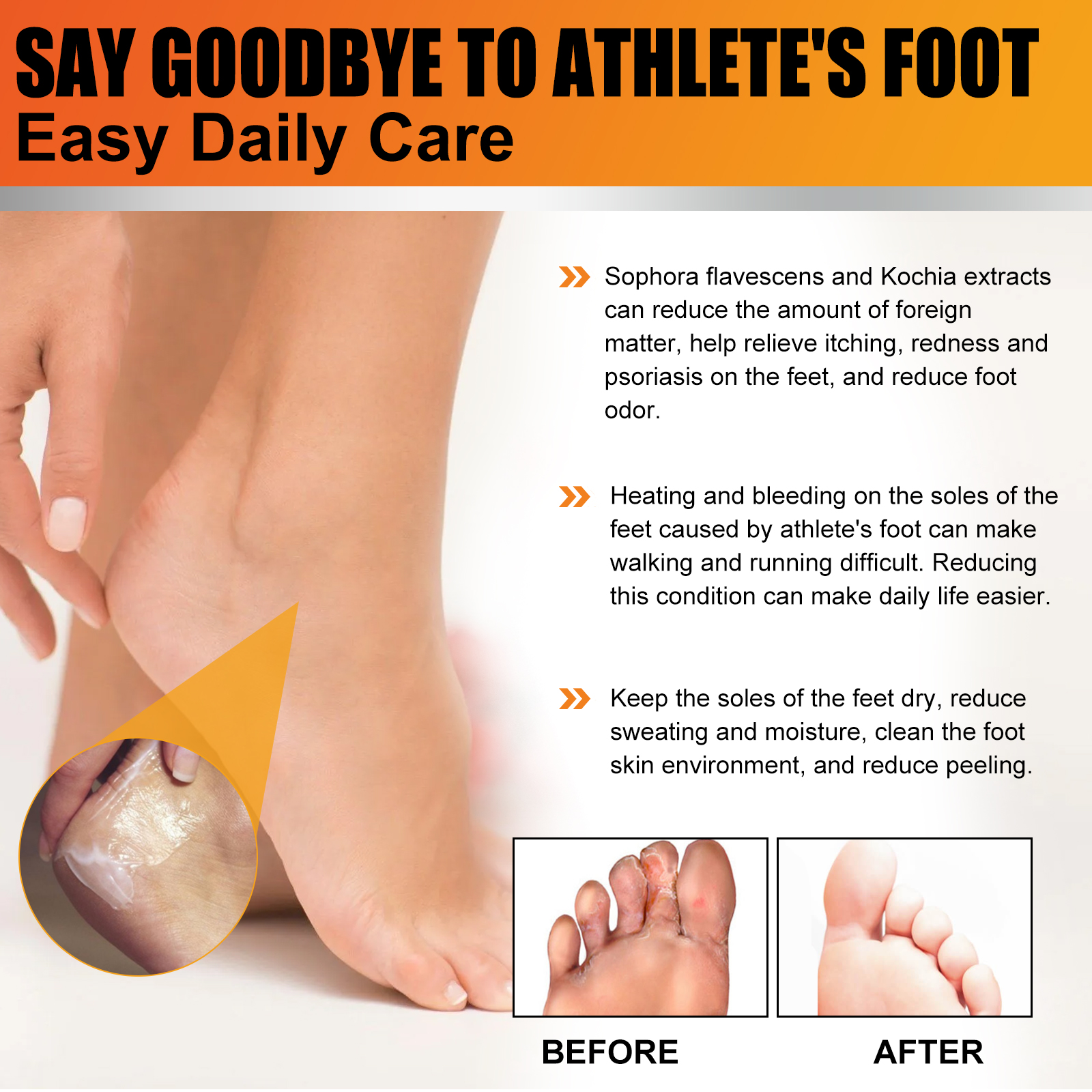我们的足部护理霜含有白凡士林、苦参提取物。它可以远离香港脚,准备迈出新的步伐。它的使用方法很简单:1.用肥皂水清洁并擦干足部皮肤。2.取适量霜,均匀涂抹在脚趾间和皮肤上。3.等5-10分钟让它吸收。4.每天使用两次,更换鞋袜,效果更佳。并且可以快速有效地止痒。