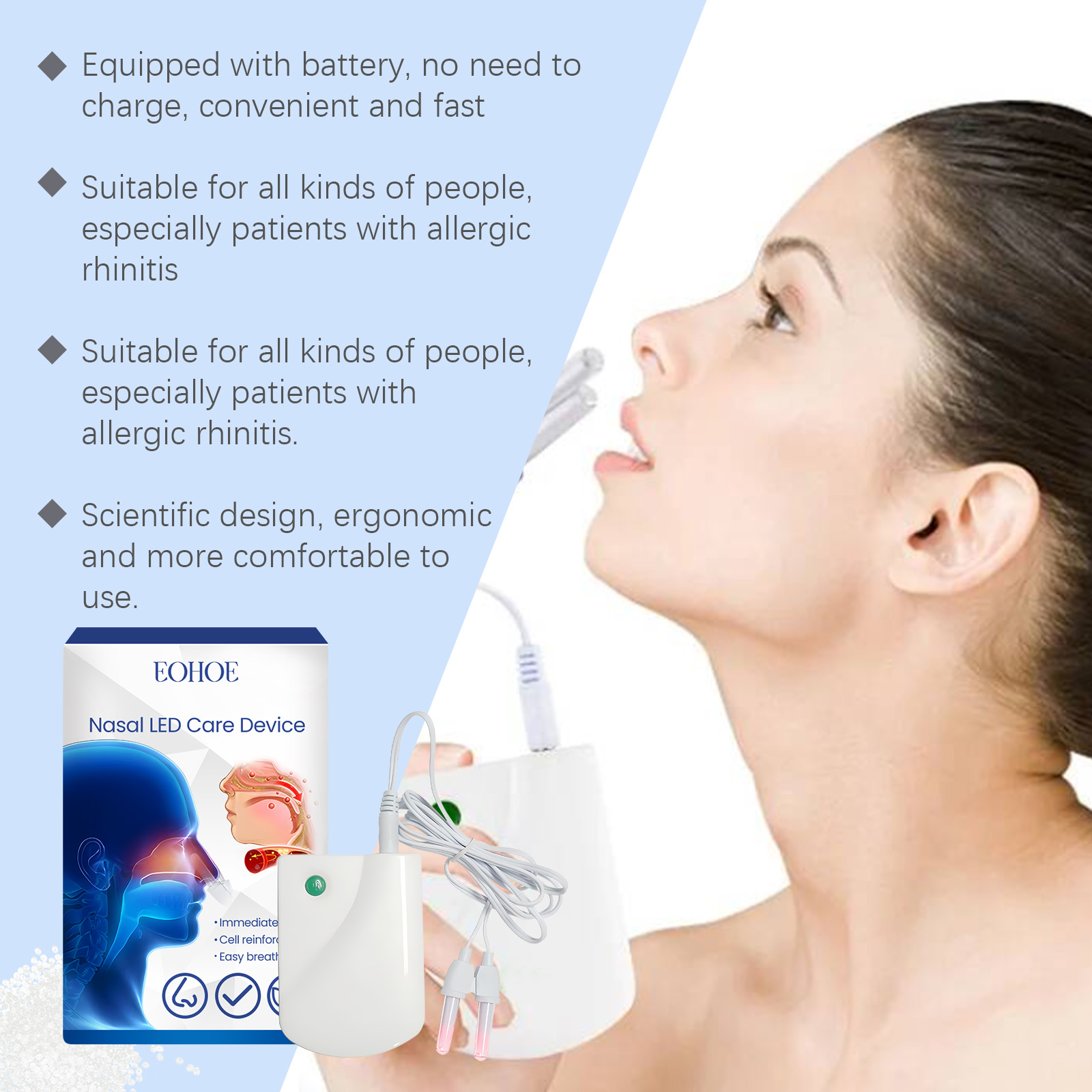 我们的鼻腔护理仪含有ABS。它可以有效缓解鼻炎,及时缓解,让您更舒适。可以强化你的鼻细胞,让你的呼吸更顺畅。它的使用方法很简单:将鼻炎线插入鼻炎机,打开开关,彻底清洁鼻腔将两个激光头插入鼻孔,等待15分钟取出激光头。并且适用于各类人群,尤其是过敏性鼻炎患者。