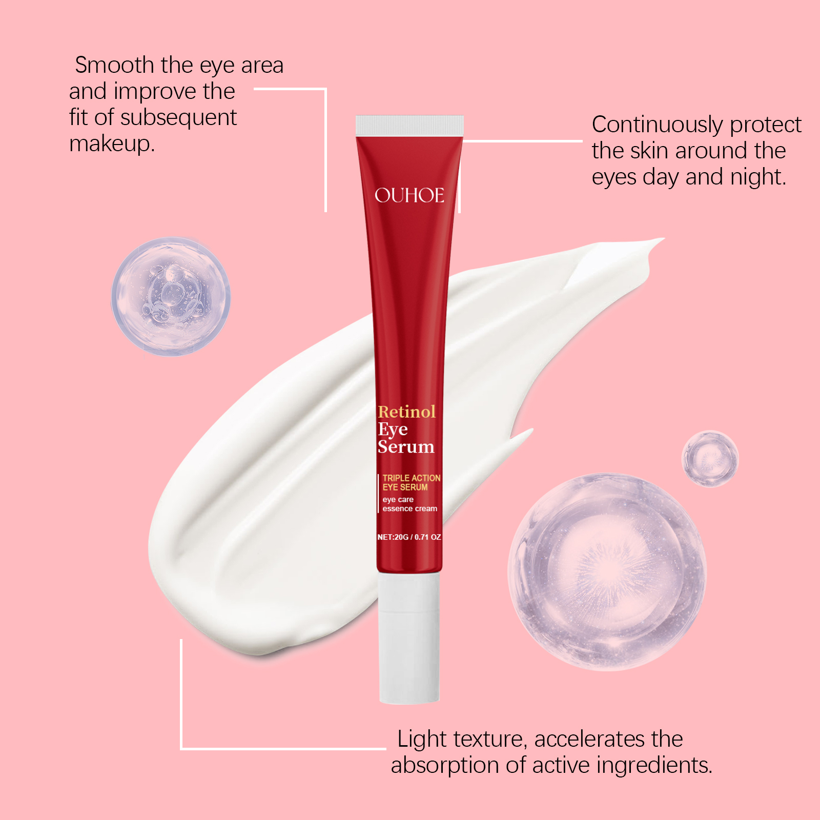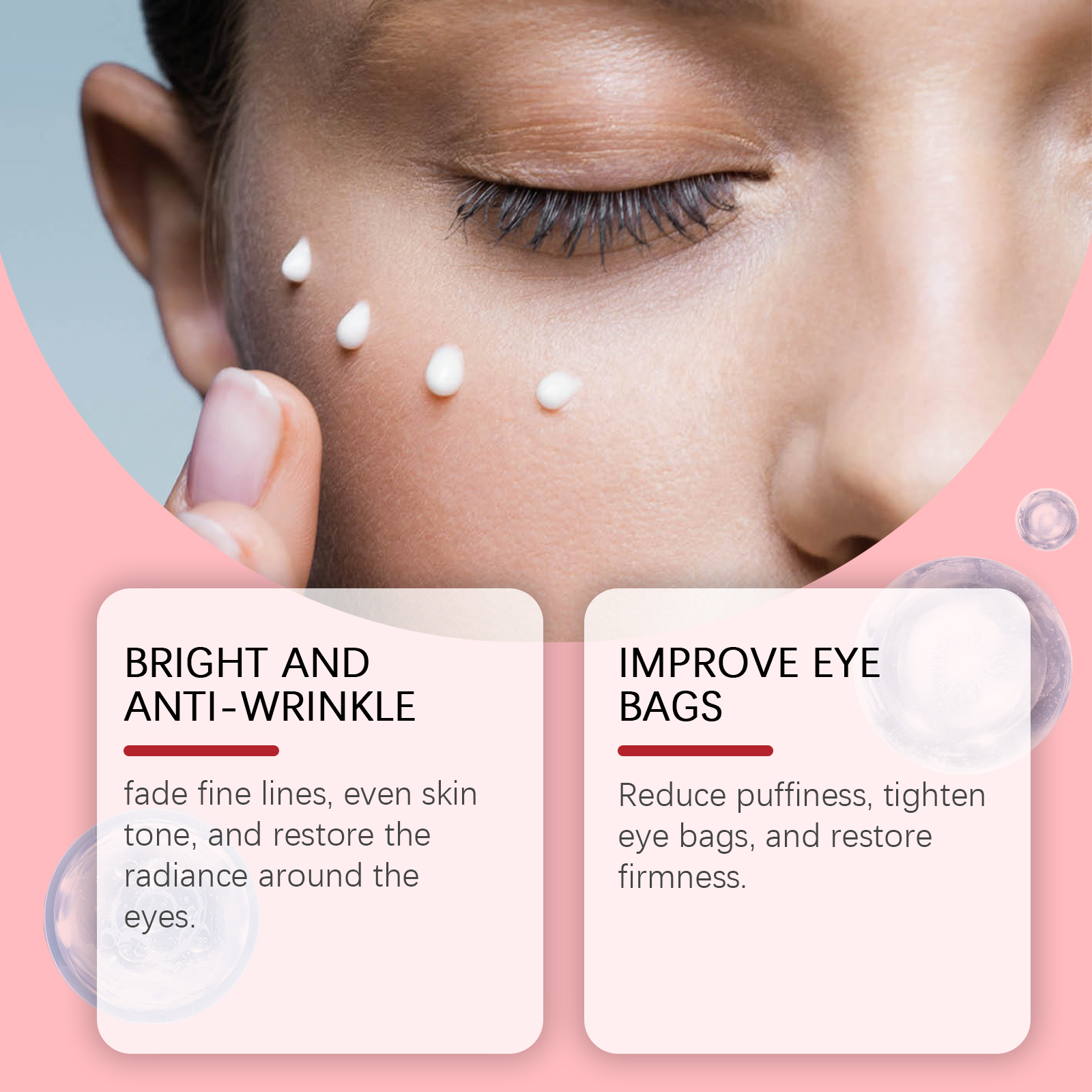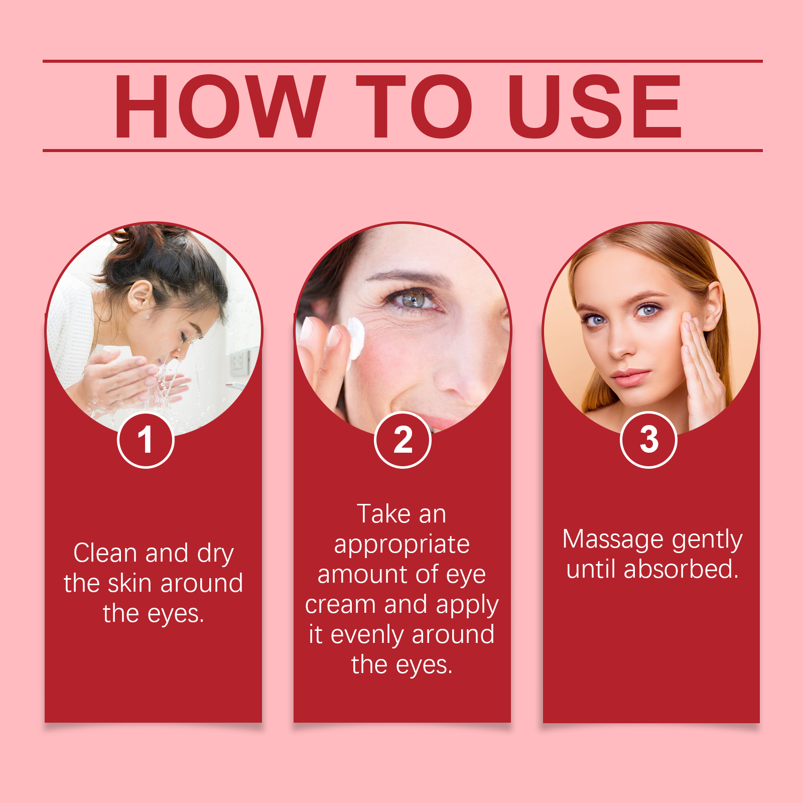 我们的三效眼部精华含有维生素C、视黄醇。它可以深层渗透,为眼周肌肤提供充足的营养。它的使用方法很简单:清洁眼部周围的皮肤,使其干燥。取适量眼霜均匀涂抹于眼周。轻轻按摩至吸收。并且可以减少浮肿,收紧眼袋,恢复紧致。