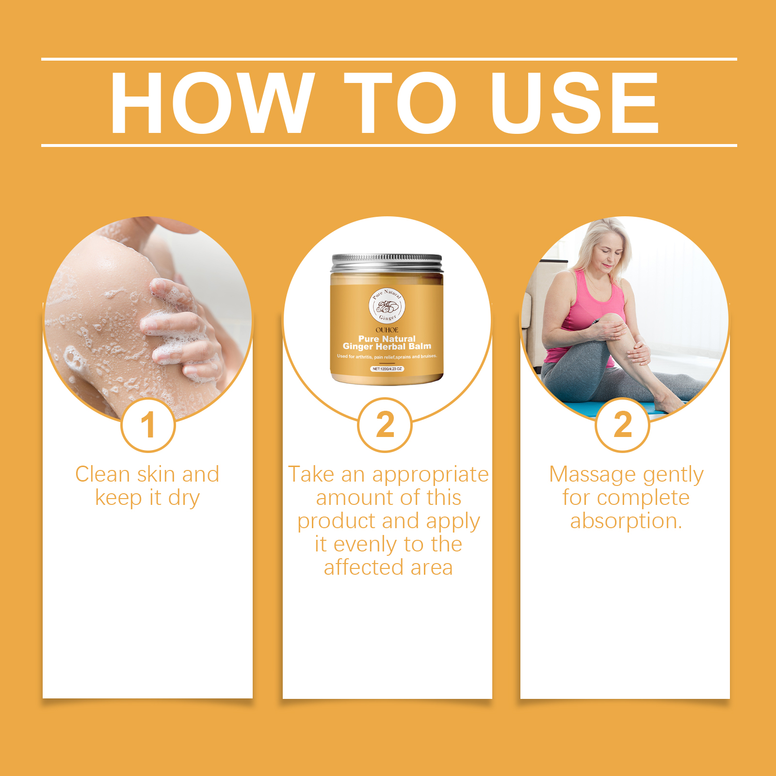 我们的生姜草本身体护理膏含有甘油、矿油、甘油硬脂酸酯。它可以保持关节健康。改善关节活动度和生活质量。它的使用方法很简单:清洁皮肤,保持干燥,取本品适量均匀涂于患处,轻轻按摩,使其完全吸收。并且清爽配方,易吸收。