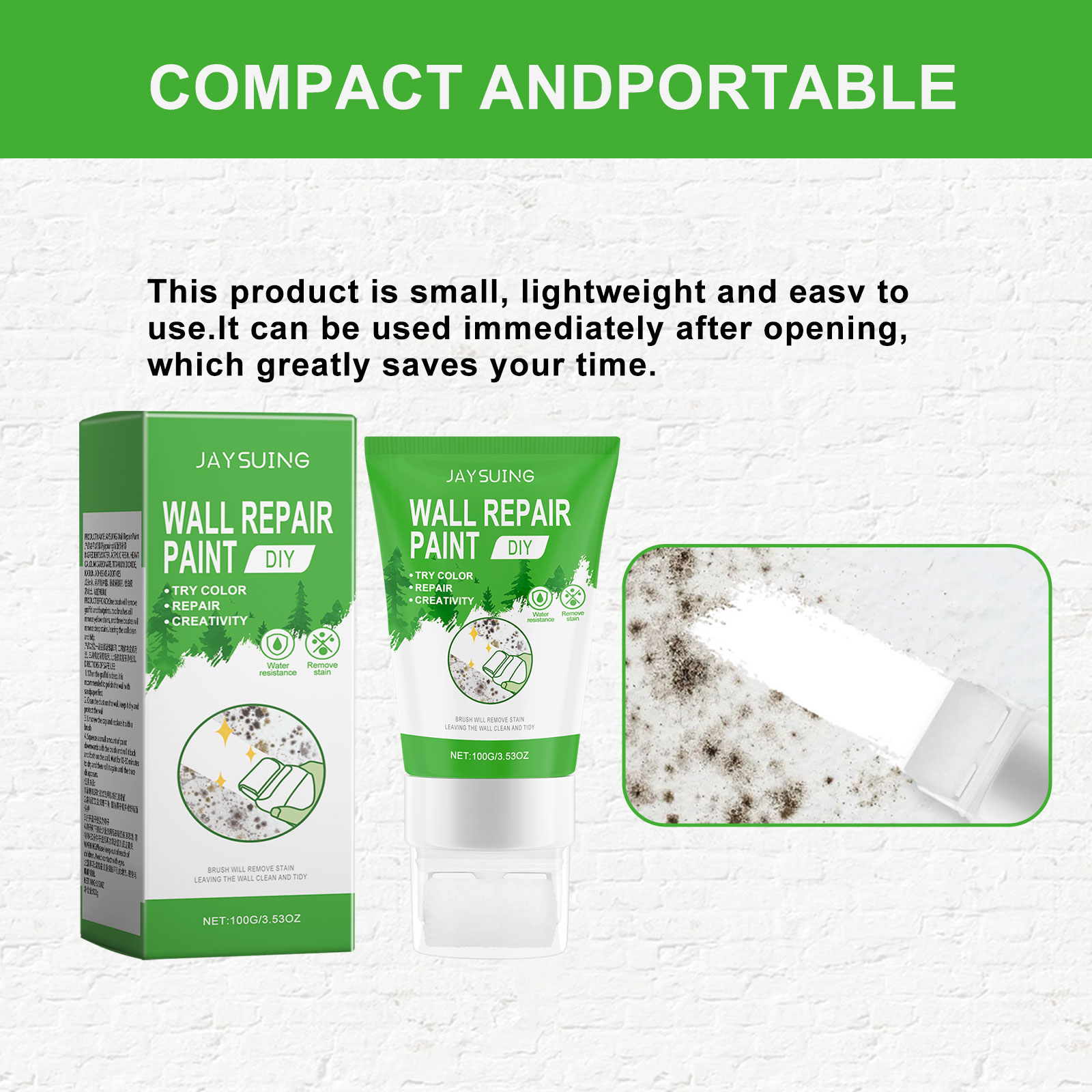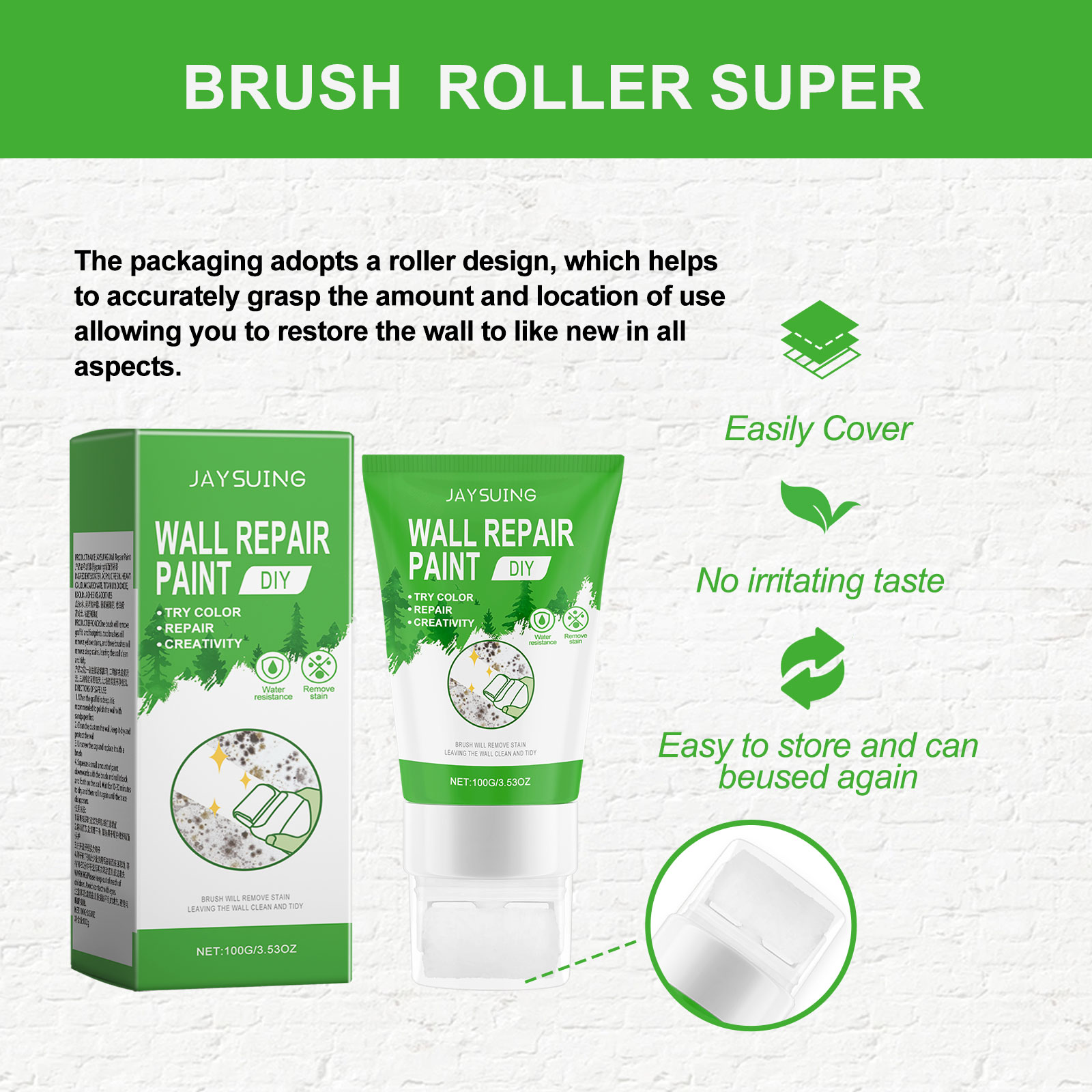 我们的墙面修补漆含有丙烯酸树脂、重质碳酸钙、钛白粉。它可以有助于准确把握用量和使用位置,让您恢复墙面的方方面面如新。它的使用方法很简单:涂鸦较深时建议先用砂纸打磨墙面。将墙面灰尘清理干净,保持其干燥并做好墙面保护。拧开盖子更换为刷子。刷子向下挤出少量涂料后在墙面来回滚动,等待10-30分钟干透后再次滚涂直到痕迹消失。墙面修补漆刷去污垢,使墙面干净整洁。