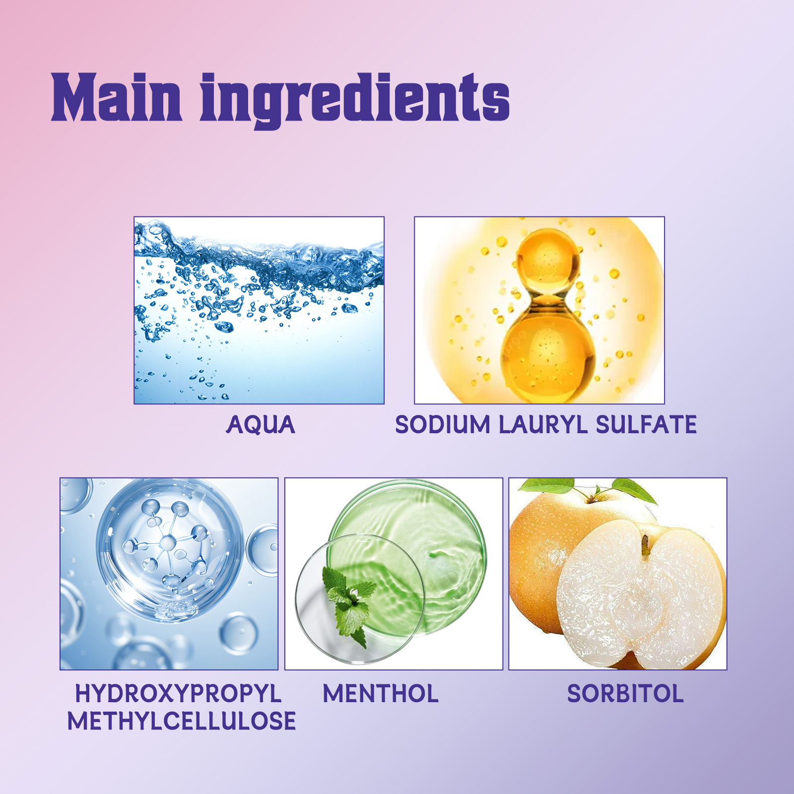 我们的紫色牙齿焕白牙膏含有薄荷醇、山梨(糖)醇。它可以温和的敏感牙齿和牙龈,不剥离牙釉质或刺激牙龈,能更自然地中和牙齿上的黄色,隐藏污渍,提高亮度,恢复活力。它的使用方法很简单:正常刷牙后,将适量本品挤在牙刷上,轻轻地刷1-2分钟,用清水彻底冲洗。恢复自然亮度牙齿,清洁牙渍污渍,清新口气,呵护牙龈洁白。
