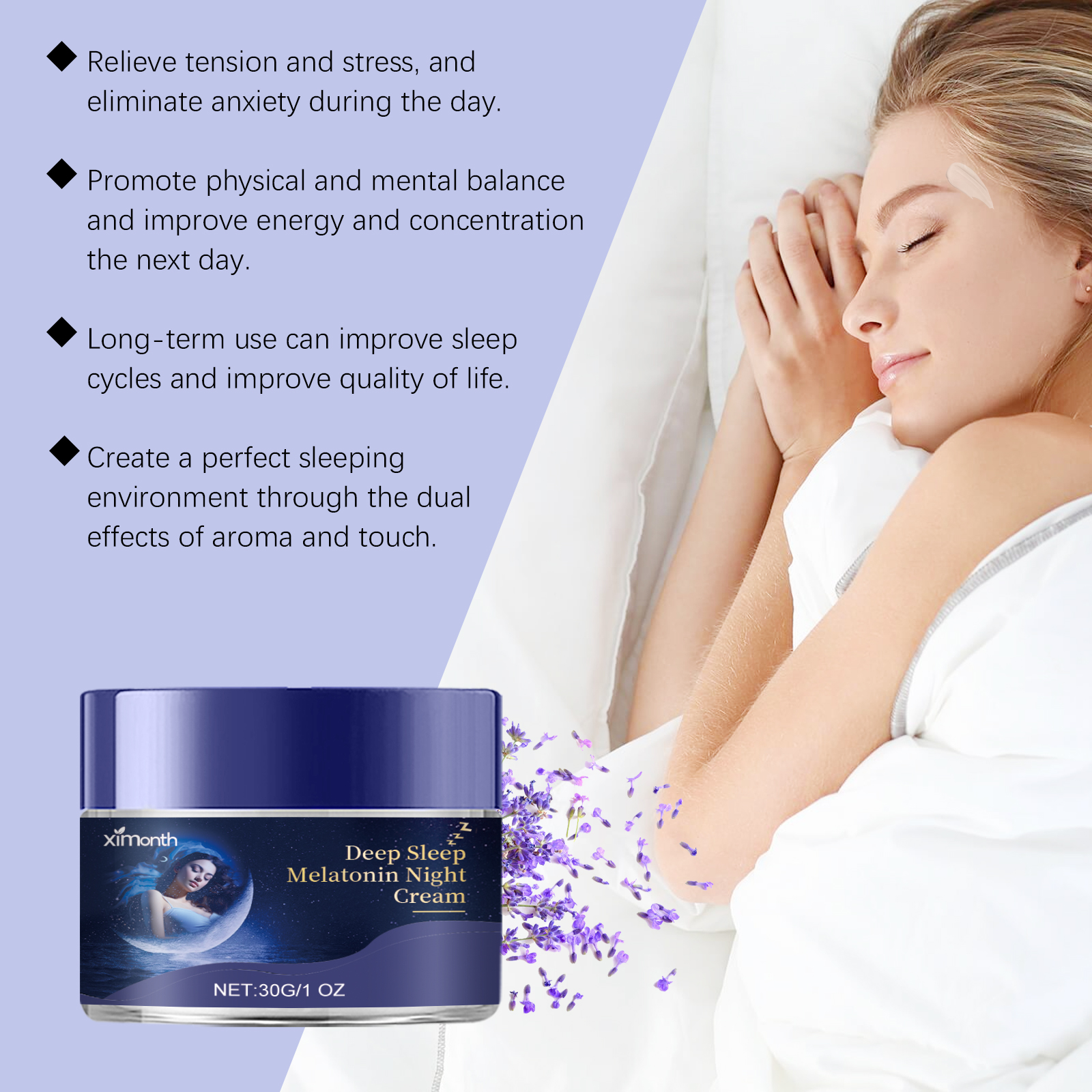 我们的舒缓晚霜含有薰衣草提取物、洋甘菊提取物、檀香油。它可以帮助晚上放松,改善整体睡眠质量。快速感受到放松效果,快速进入睡眠状态。它的使用方法很简单:1. 清洁和干燥面部皮肤;2. 取适量面霜均匀涂抹于面部;3. 轻轻按摩太阳穴和脉搏点,直至吸收。适合所有皮肤类型,用途广泛。有助于缓解长时间工作带来的疲劳。