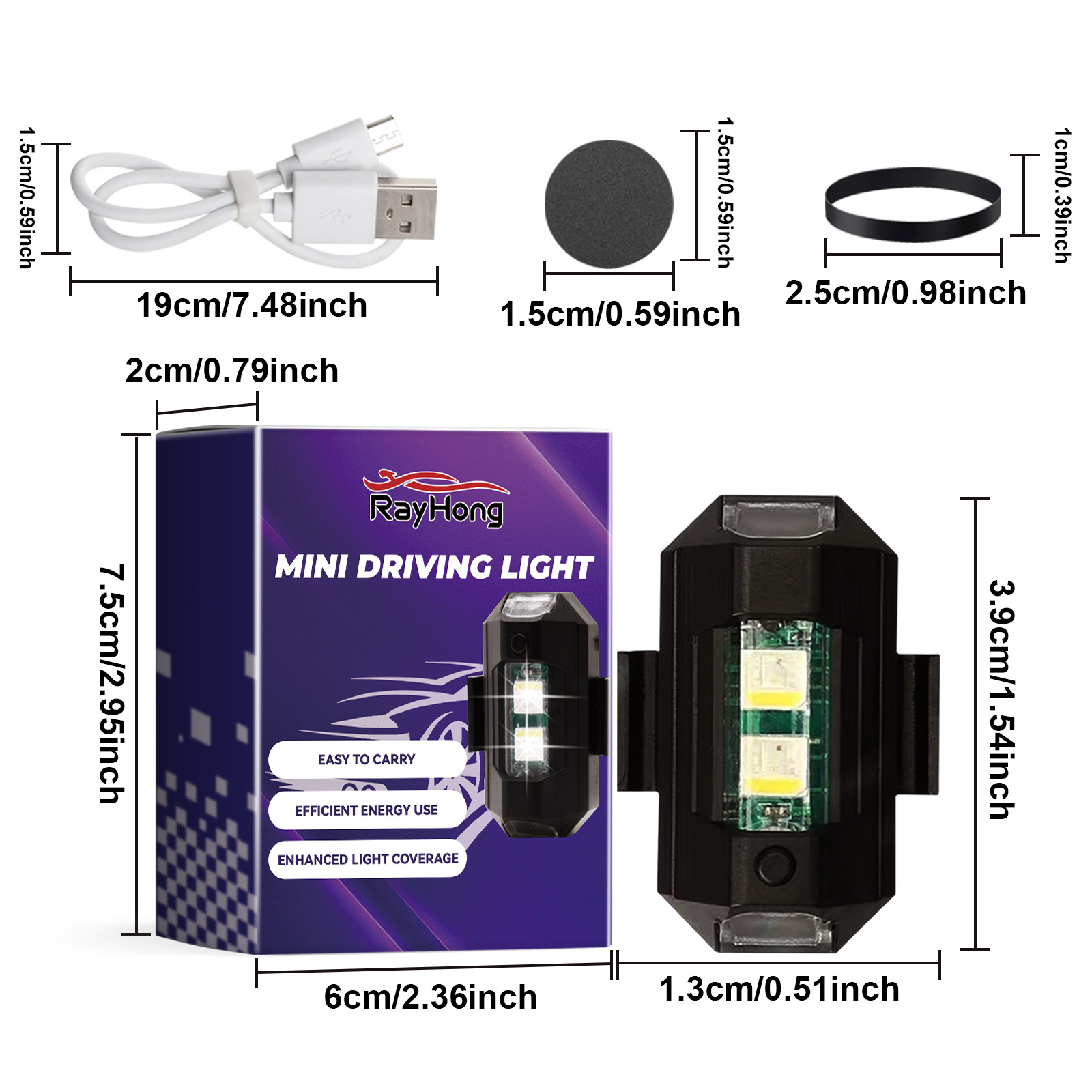我们的迷你行车灯含有驾驶灯,V8USB电缆。它可以高效节能,迷你型设计,携带方便,安装方便,使出行更加方便。它的使用方法很简单:1.用橡皮筋和圆贴纸固定汽车上的车灯;2.按下并保持开关2秒,即可开机和关机,并短暂按下按钮,即可调整照明模式。并且可以小时的充电时间可提供8小时的使用,节约用电成本。
