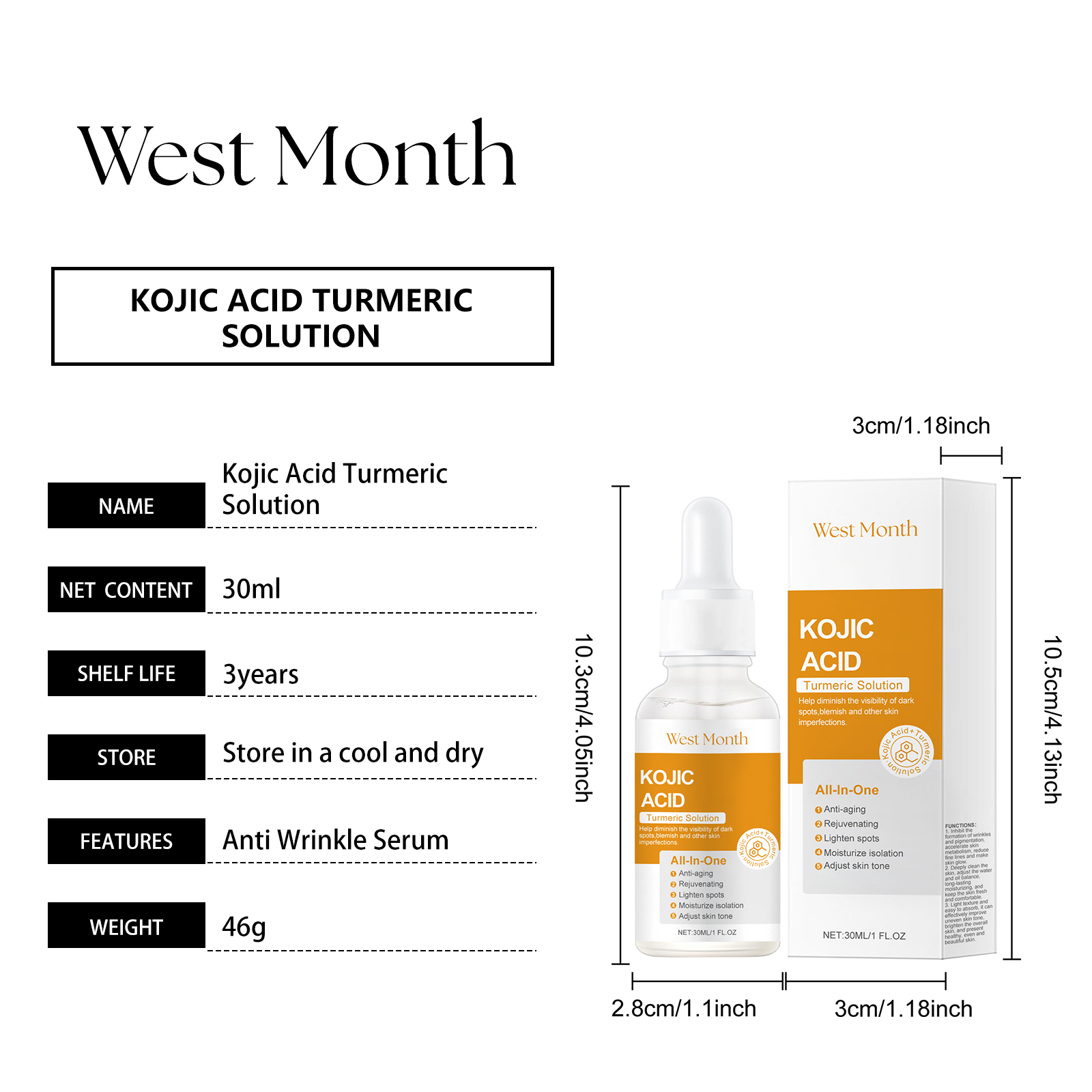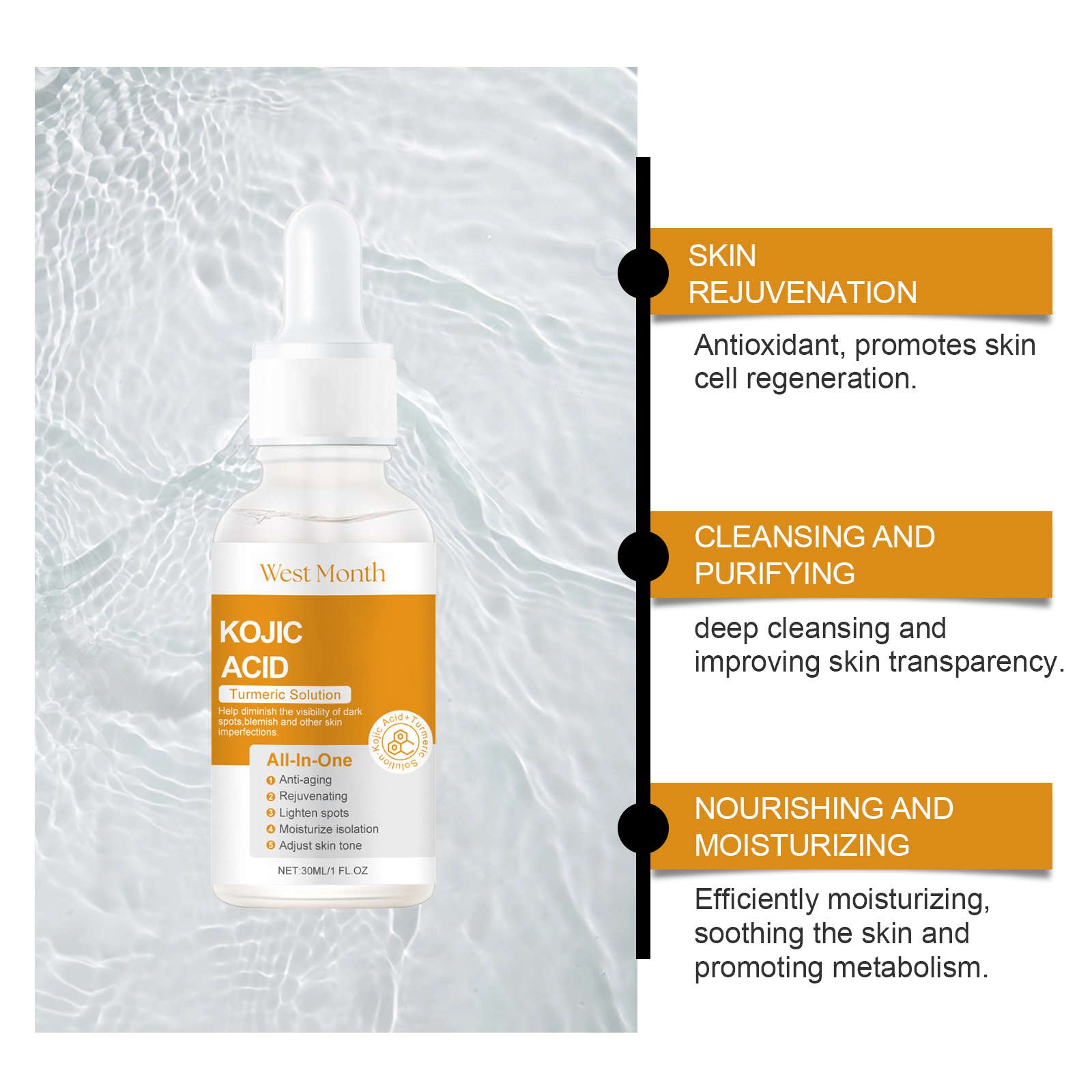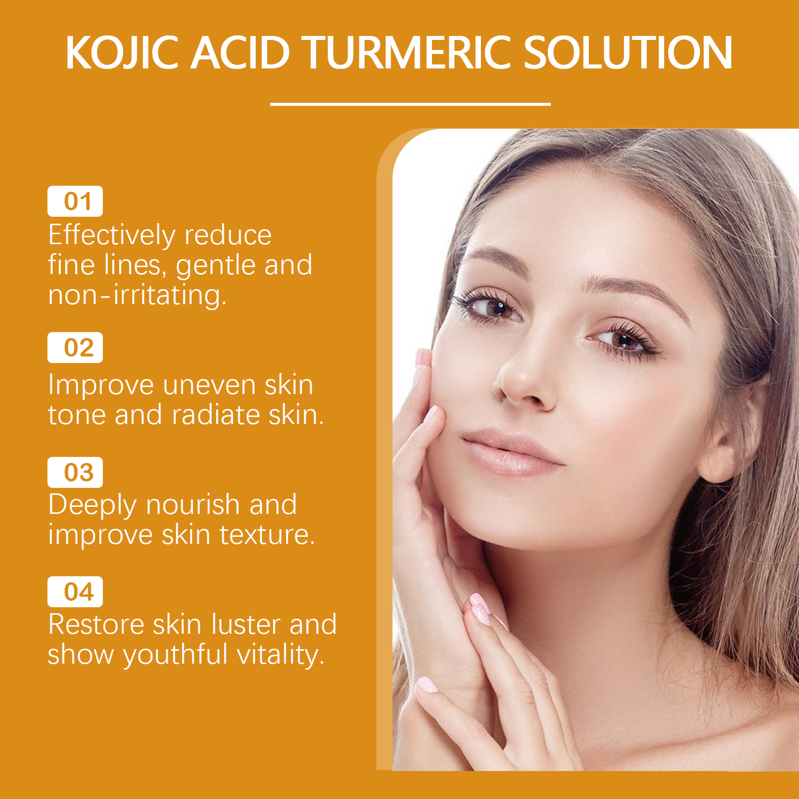 我们的姜黄曲酸抗皱提亮精华液含有羟乙基纤维素、姜黄根提取物、曲酸。它可以减少松弛下垂,恢复弹性。精华素的目的是准确地针对皱纹和暗淡的地区。提高肌肤的自我修复能力,抵御外界伤害。它的使用方法很简单:清洁干燥面部肌肤,取适量本品均匀涂于面部,轻轻按摩至吸收。并且可以促进血液循环,改善皮肤健康。