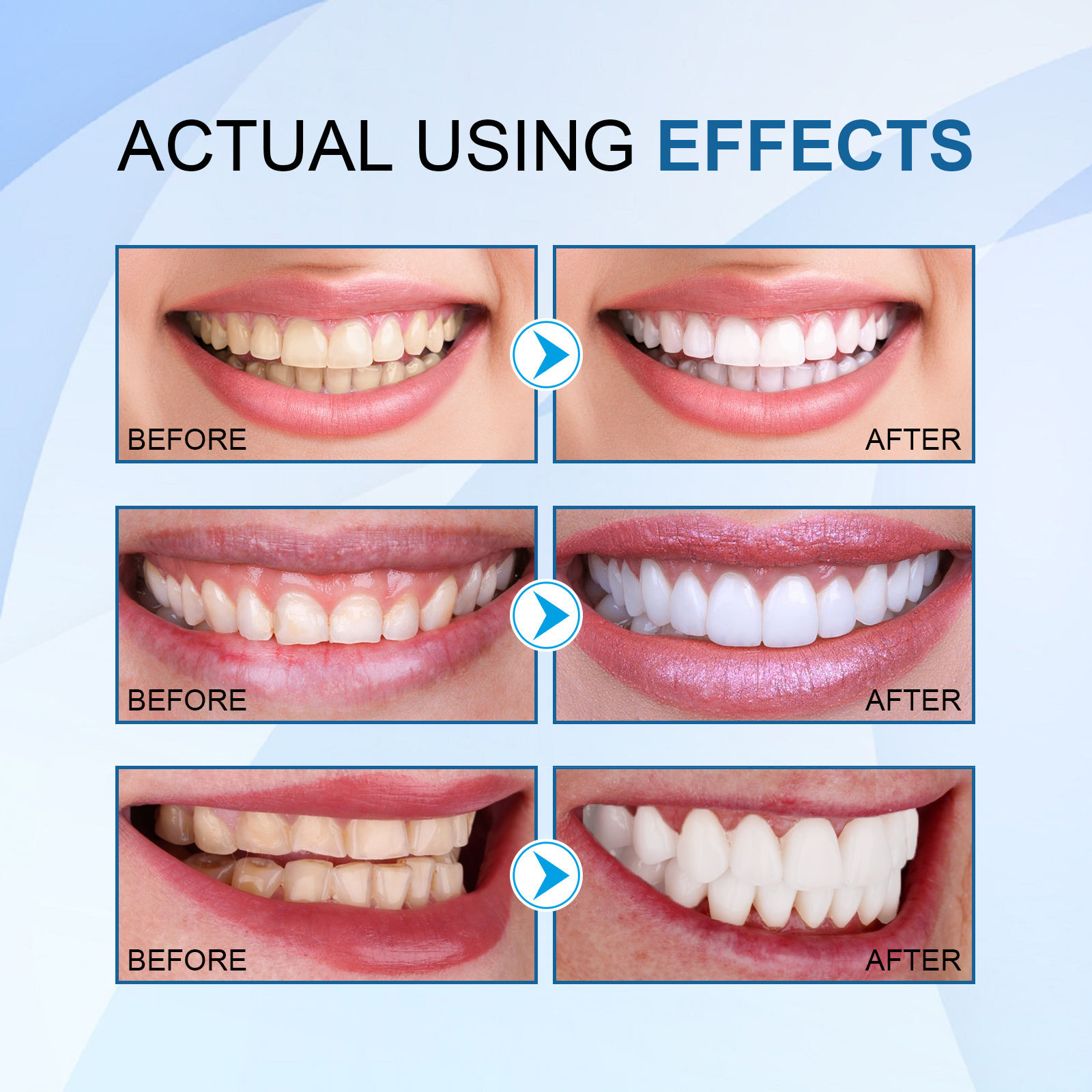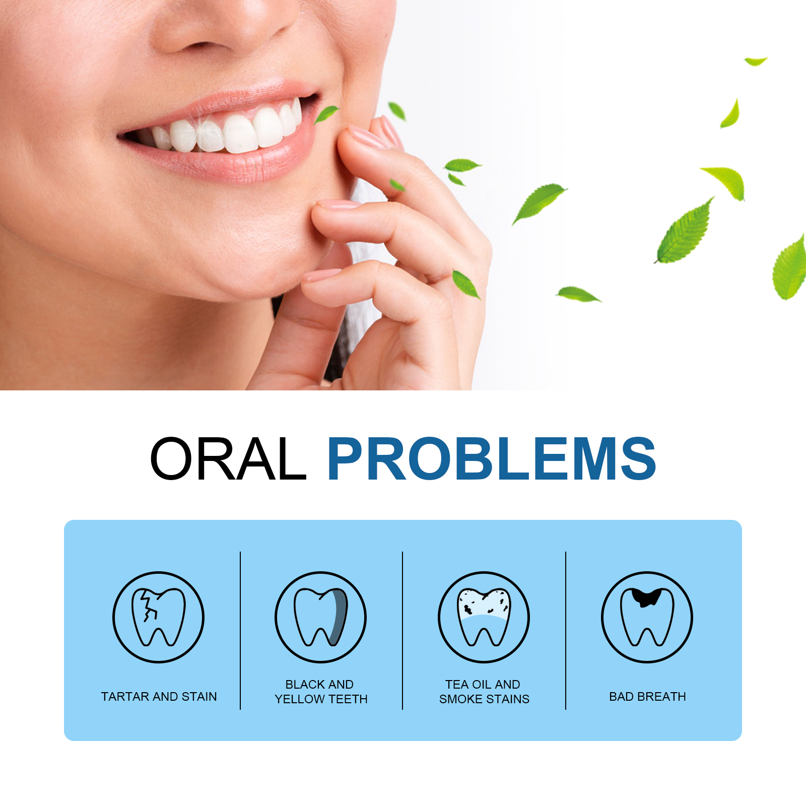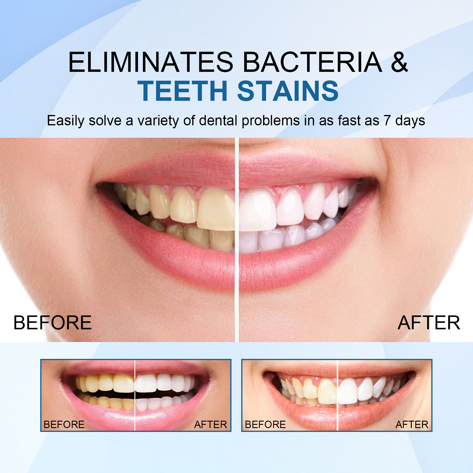我们的牙齿亮白精华含玉兰、细辛、薄荷油。它可以帮助去除牙齿表面的污渍,而不会造成任何损伤。此外,它不仅能美白牙齿,还能强化牙釉质,促进牙齿和牙龈健康,清新口气,防止日后牙齿变色。它的使用方法很简单:使用前先漱口,将精华液滴在拭子的另一端,反复涂抹、擦拭牙齿表面,再用清水漱口,直到污垢被清除即可。可以深层淡化牙斑,有效去除牙齿污渍,保持口腔健康,消除口腔异味。