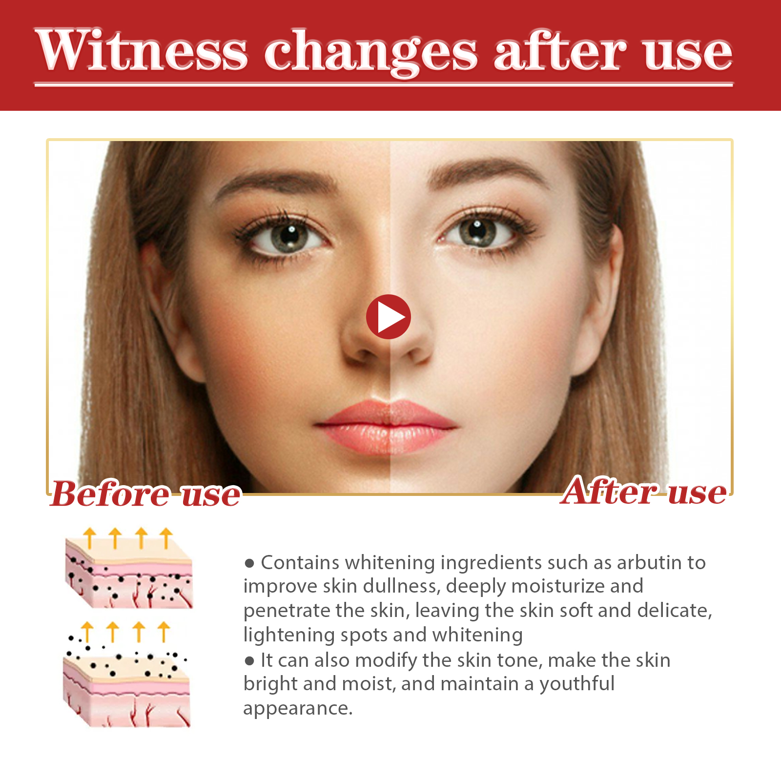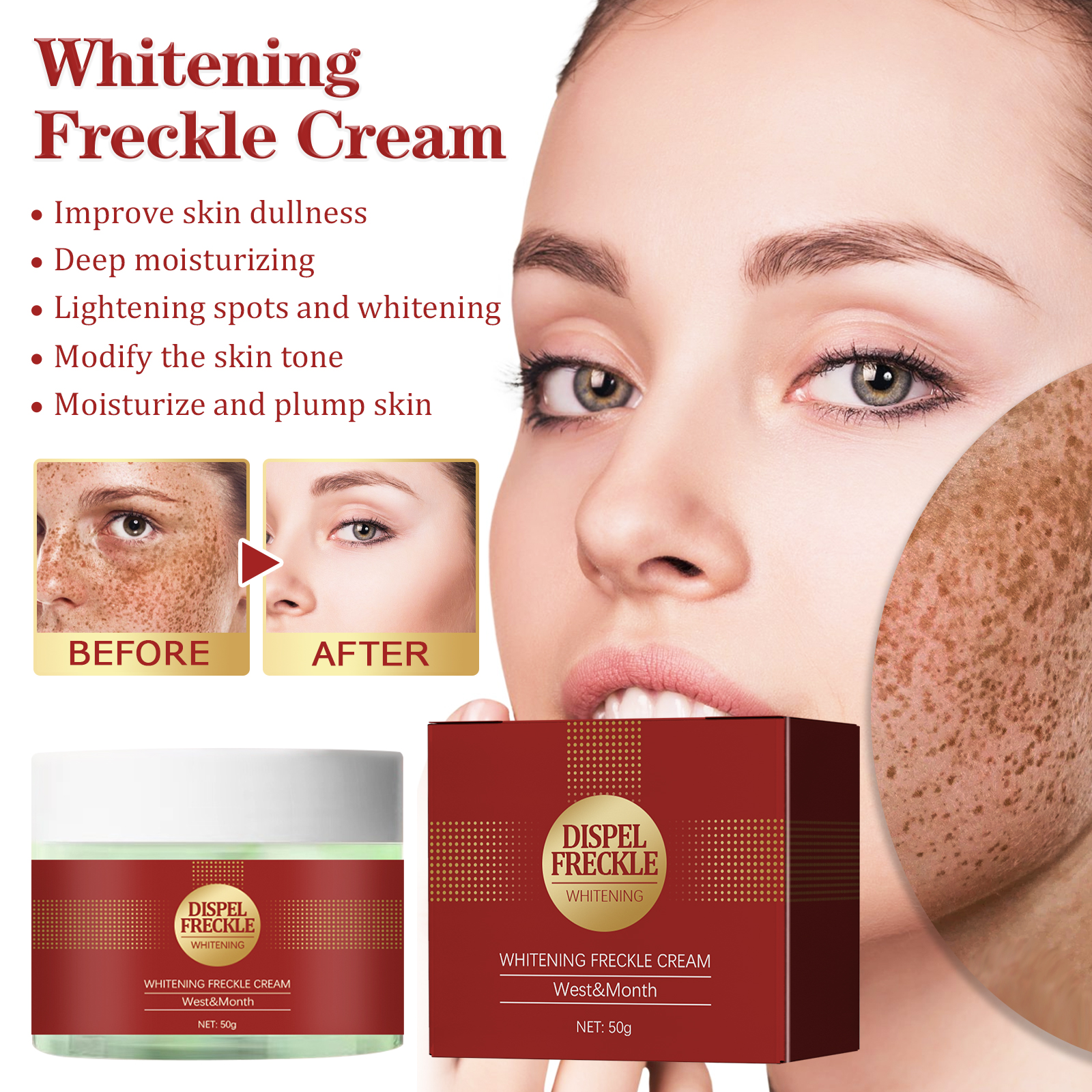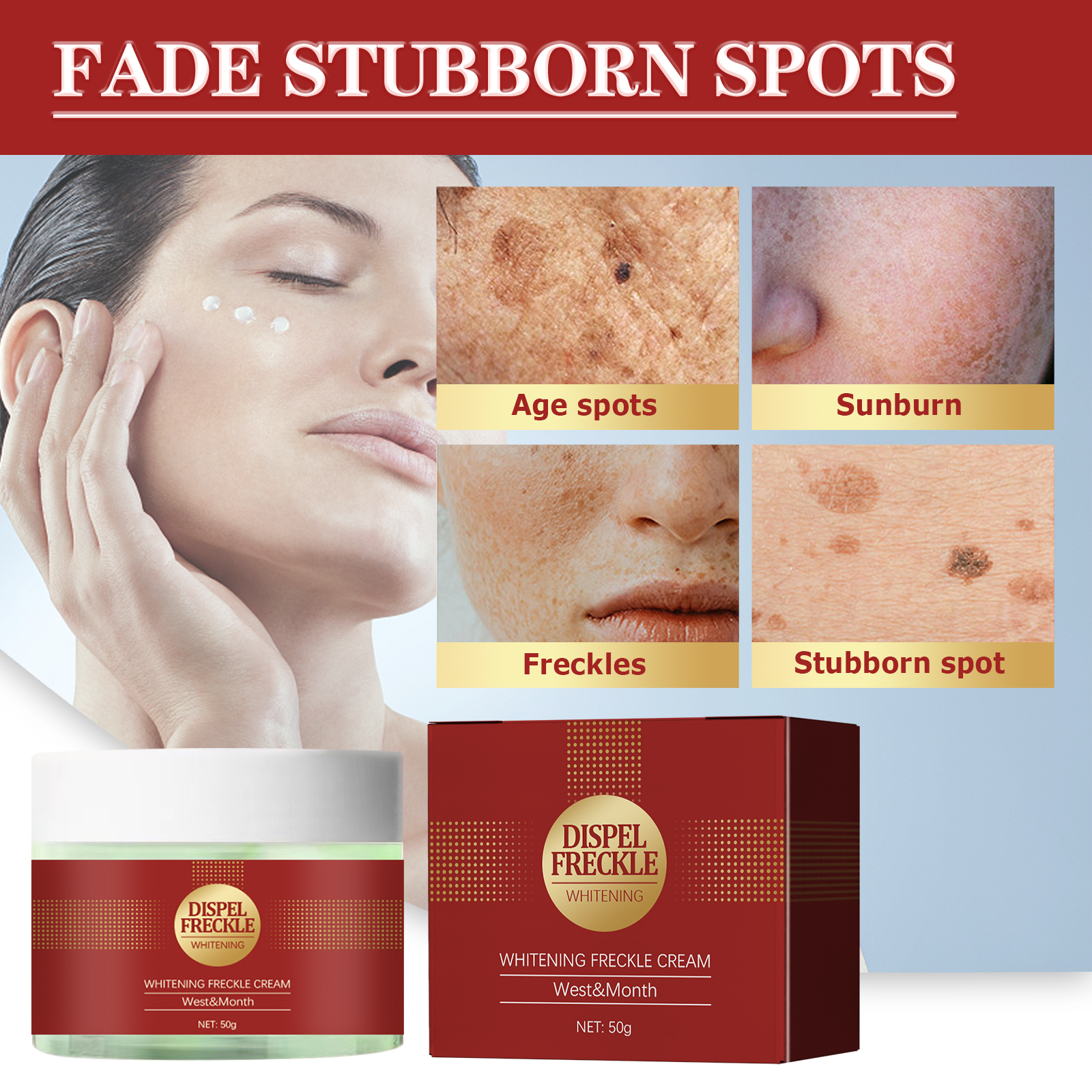 我们的焕白溶斑霜含有熊果苷、透明质酸钠、角鲨烷。它可以改善肌肤暗哑,深层滋润并渗透肌肤,令肌肤柔软细腻,淡化色斑,还能修饰肤色,使肌肤明亮润泽,保持青春容颜。它它的使用方法很简单:洁肤爽肤后,取适量本品均匀涂于面部,再用指尖轻轻按摩至吸收即可。能深入肌肤底层,修护受损肌肤,均匀肤色,滋润、丰盈肌肤。