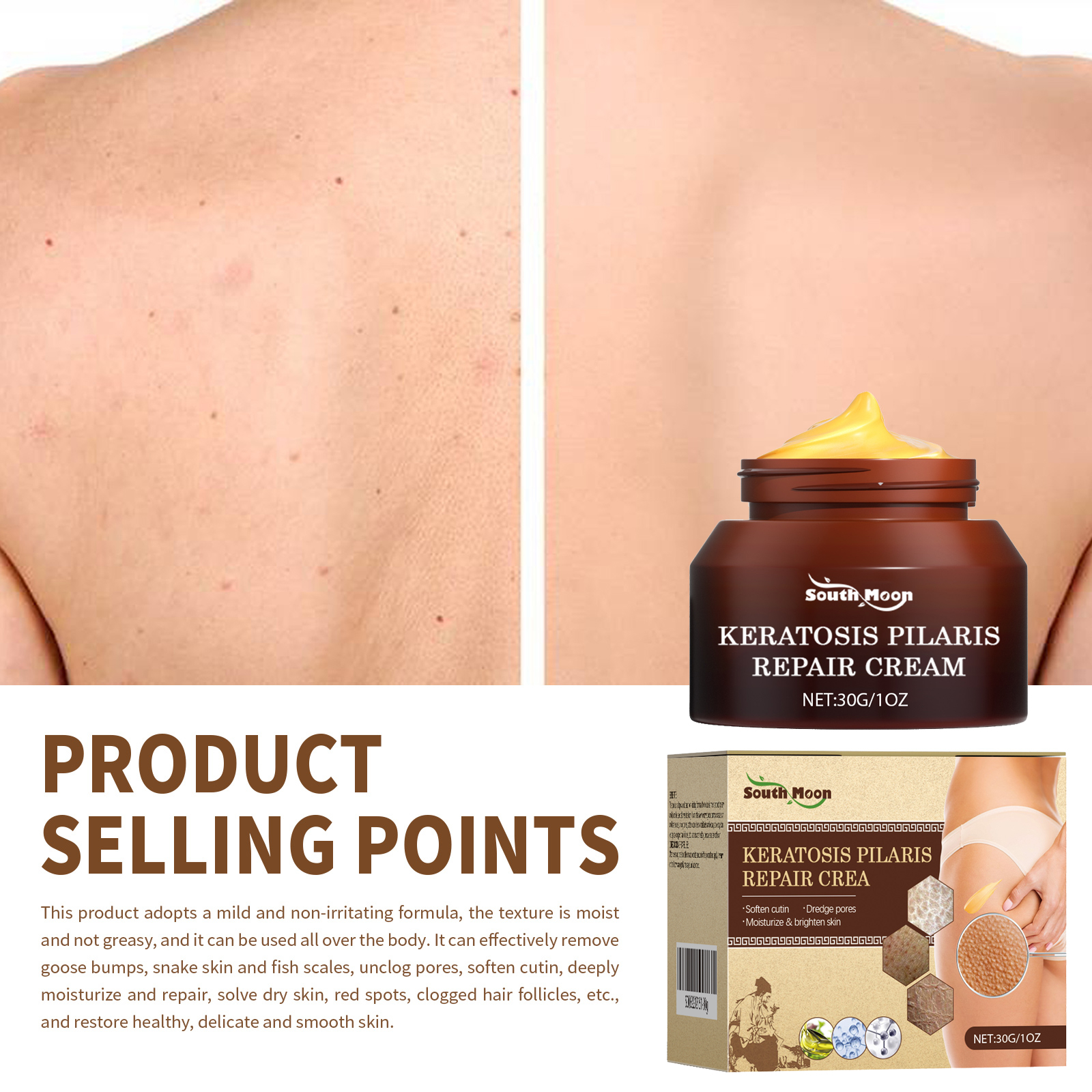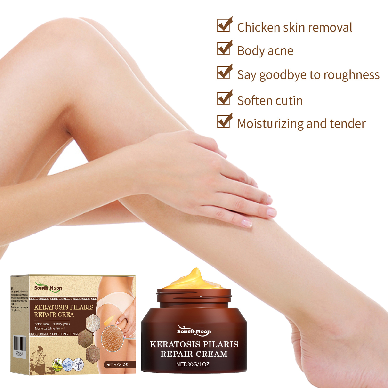 我们的身体护理霜含有乳酸,芍药根提取物,甘油。它可以,软化角质,深层保湿修护,解决皮肤干燥、红斑、毛囊堵塞等问题,恢复健康、细腻、光滑的肌肤。它的使用方法很简单:1.清洗待涂部位。2.取适量本品均匀涂抹于全身肌肤。3.轻轻按摩直至吸收。本品采用温和无刺激配方,质地湿润不油腻,全身均可使用。