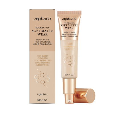 zephoco 浅肤色柔滑遮瑕粉底乳 自然哑光清透服帖水润保湿粉底