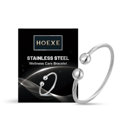 Hoexe 银色螺纹开口手镯 身体舒适护理时尚优雅日常生活佩戴手环