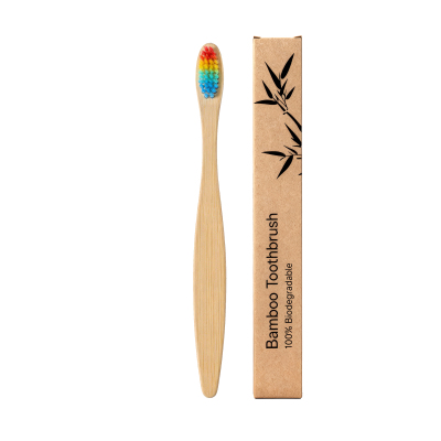 AMZ 彩虹色平板竹制牙刷 温和清洁手动轻便舒适手柄适合日常家用竹制牙刷