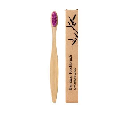 AMZ 紫色平板竹制牙刷 温和清洁手动轻便舒适手柄适合日常家用竹制牙刷