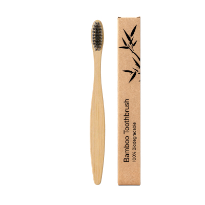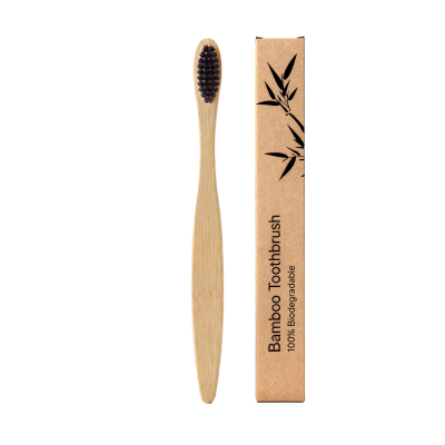 AMZ 黑色平板竹制牙刷 温和清洁手动轻便舒适手柄适合日常家用竹制牙刷