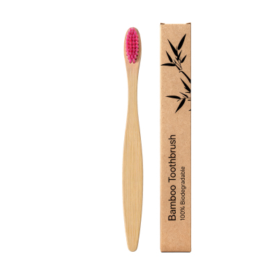 AMZ 粉色平板竹制牙刷 温和清洁手动轻便舒适手柄适合日常家用竹制牙刷