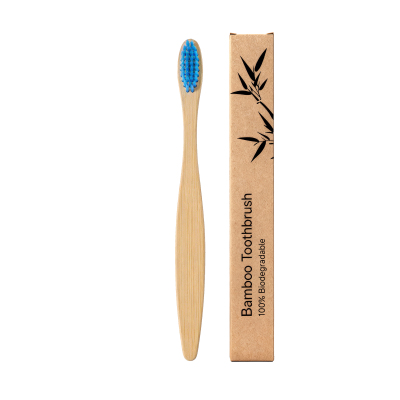 AMZ 蓝色平板竹制牙刷 温和清洁手动轻便舒适手柄适合日常家用竹制牙刷