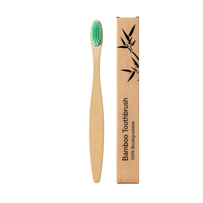 AMZ 绿色平板竹制牙刷 温和清洁手动轻便舒适手柄适合日常家用竹制牙刷