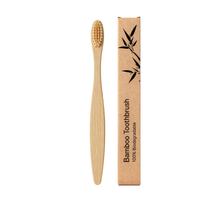 AMZ 米黄色平板竹制牙刷 温和清洁手动轻便舒适手柄适合日常家用竹制牙刷