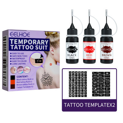 EELHOE 果汁纹身套装 防水临时性果汁皮肤纹身液镂空图案纹绣模版