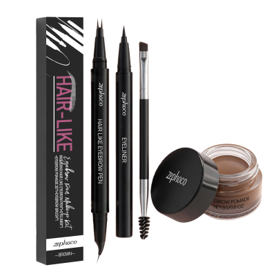 zephoco 深棕色染眉套装 修饰眉形自然显色丝滑流畅不易晕染眉膏