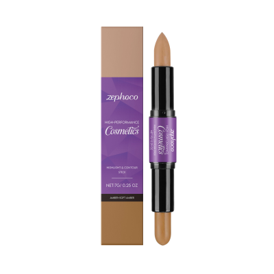 zephoco 2合1奶油高光和修容双头棒 琥珀色自然晕染遮瑕立体妆效