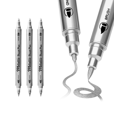 AMZ 丙烯颜料马克笔(银色) 墨水顺滑书写多表面适用美术绘画双头水性马克笔