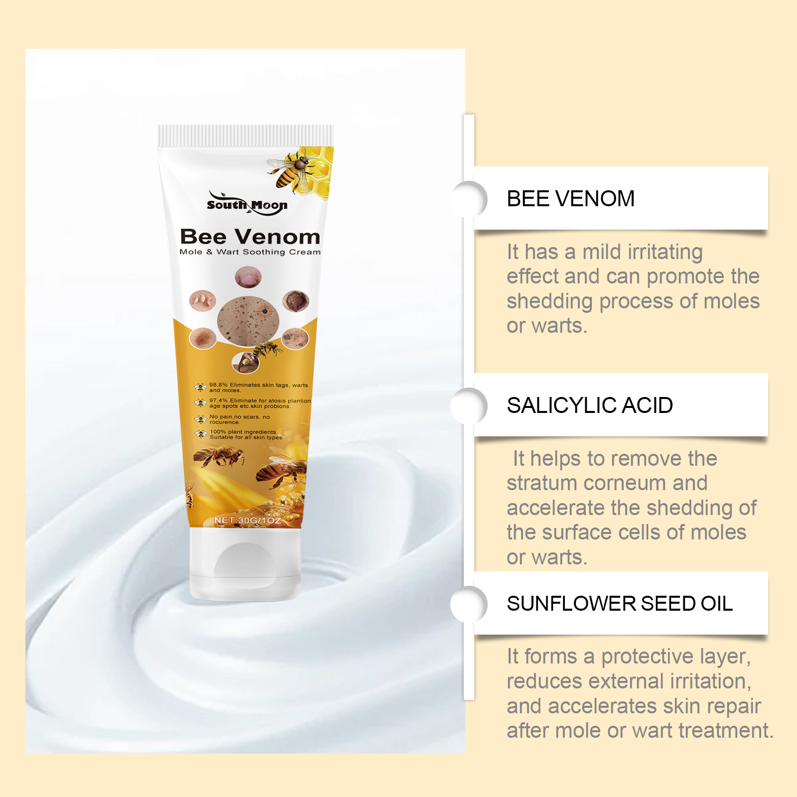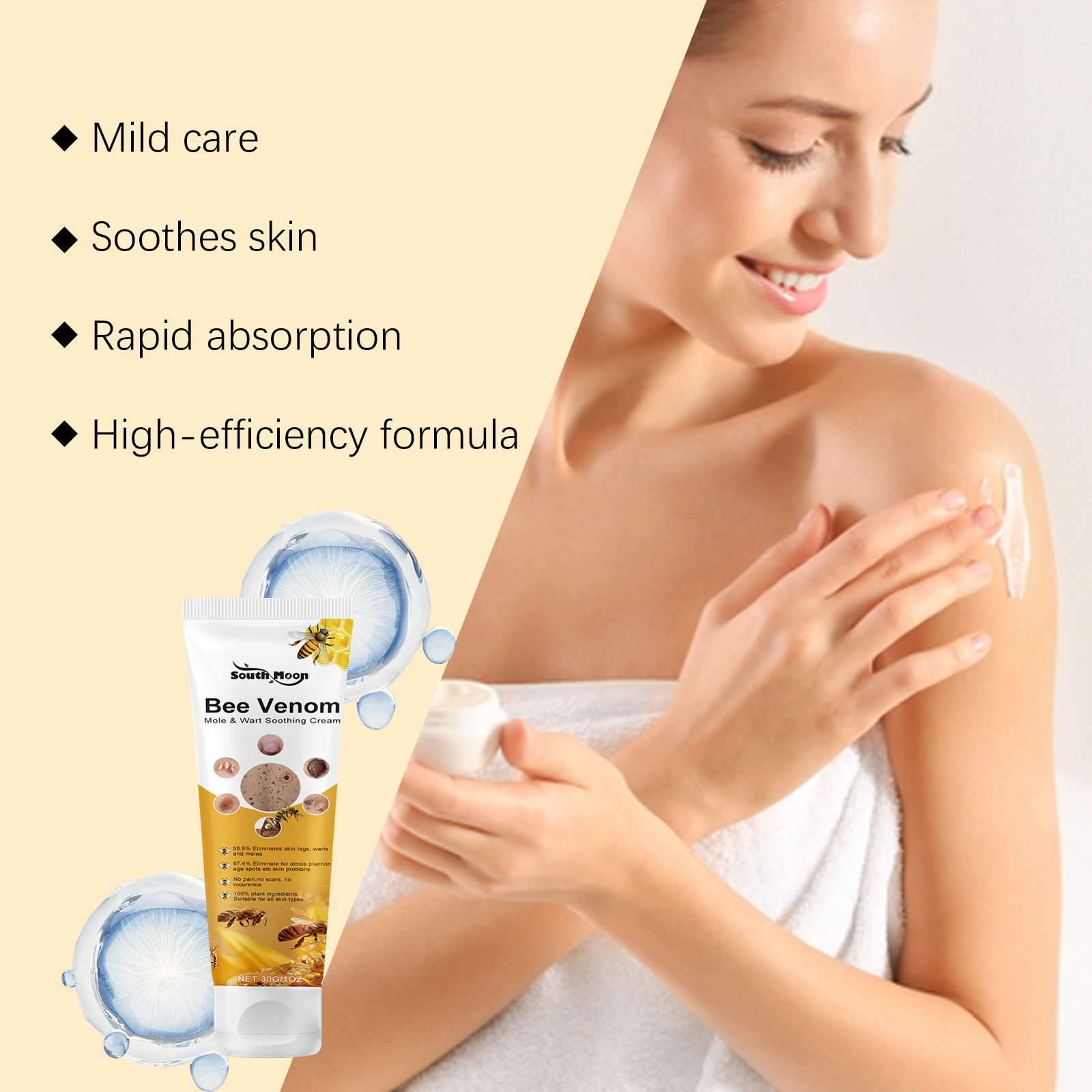 我们的皮肤修护霜,由卡波姆、三乙醇胺精心调配而成。专为帮助亮泽肌肤,恢复美丽和紧致设计。使用方法极为便捷:清洁皮肤,取适量乳膏,轻轻涂抹于患处,然后将它均匀地涂抹,等待它被吸收。并且可以调节皮肤状况,抑制疣的发生。