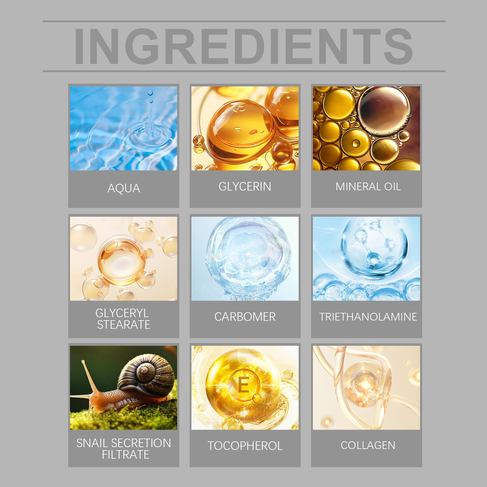 蜗牛分泌物滤液、生育酚(维生素E)