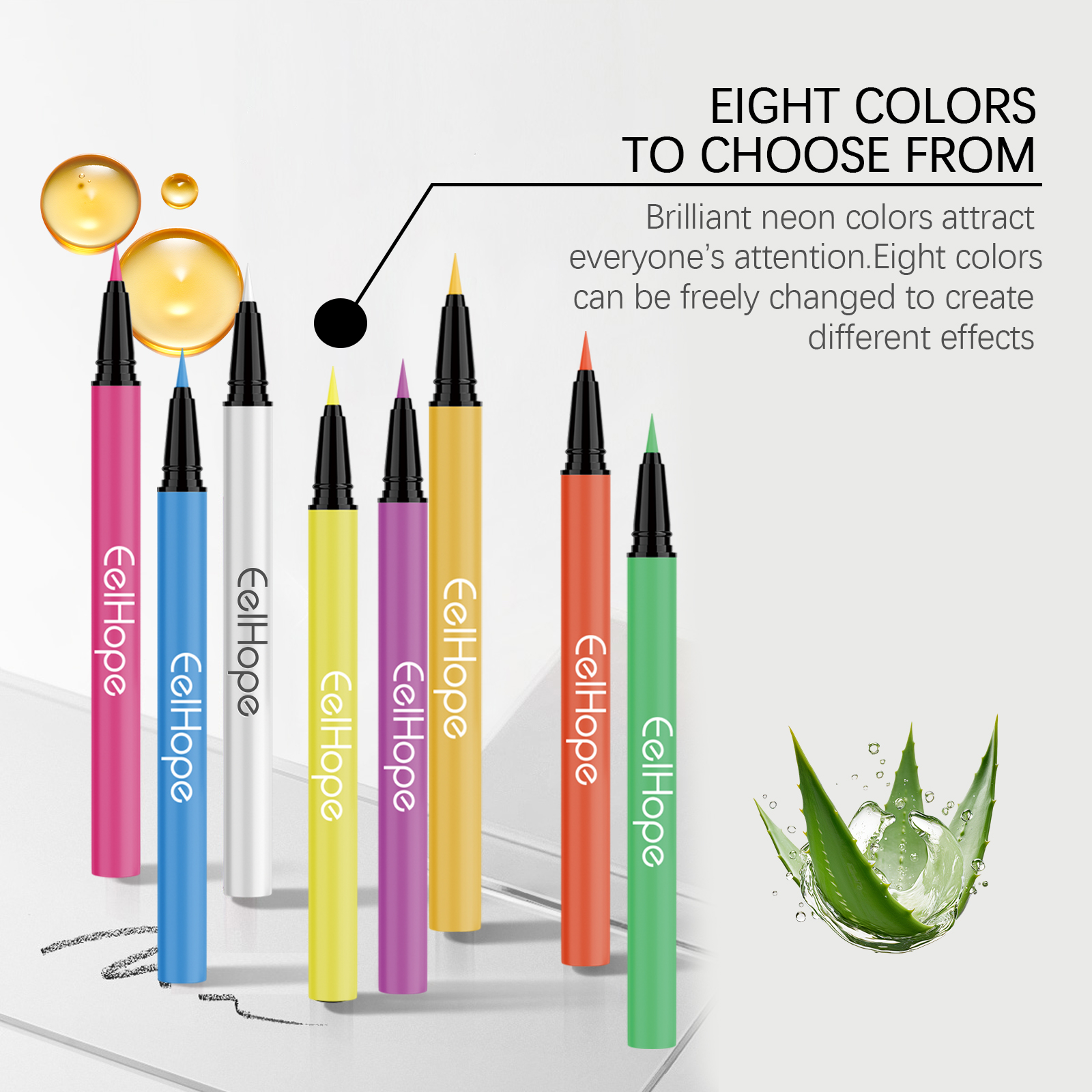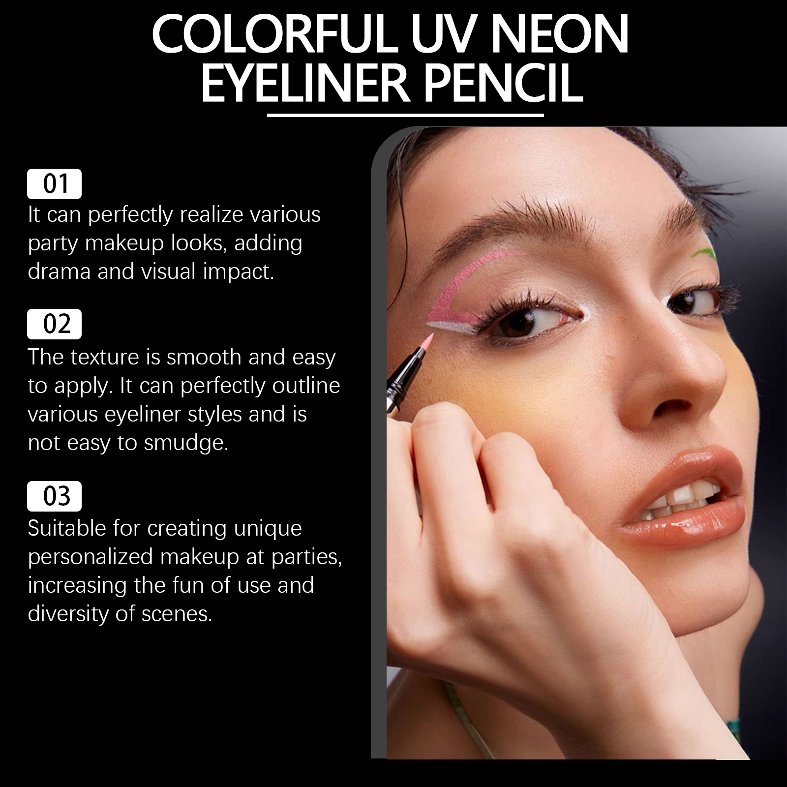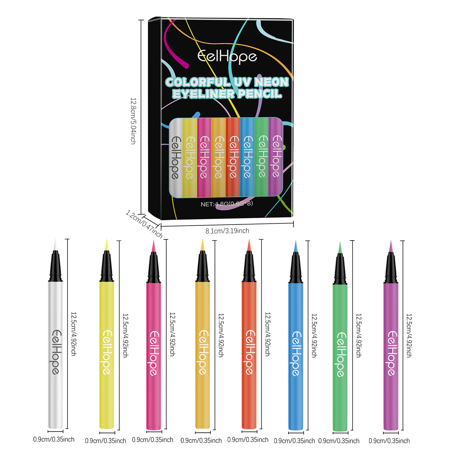 我们的8色万圣节霓虹液体眼线笔含有二氧化钛、芦荟提取物。它可以创造出令人惊艳的妆容。提供各种霓虹色,适合各种创意妆容。它的使用方法很简单:使用前轻轻摇动眼线,打开笔帽,用笔尖沿着睫毛根部画眼线,等待几秒钟,让液体干燥,防止沾污。并且适合于面部和身体的绘画,展现你的个性和创造力。
