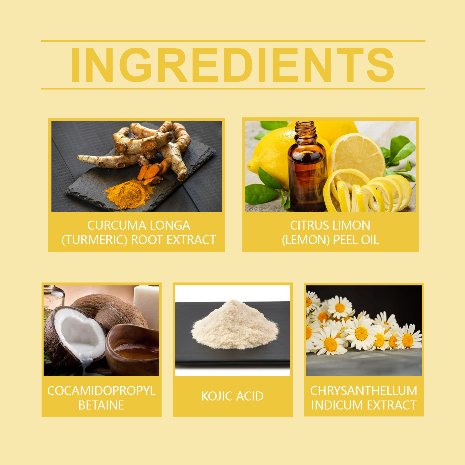 洋甘菊提取物、椰油酰胺丙基甜菜碱、曲酸