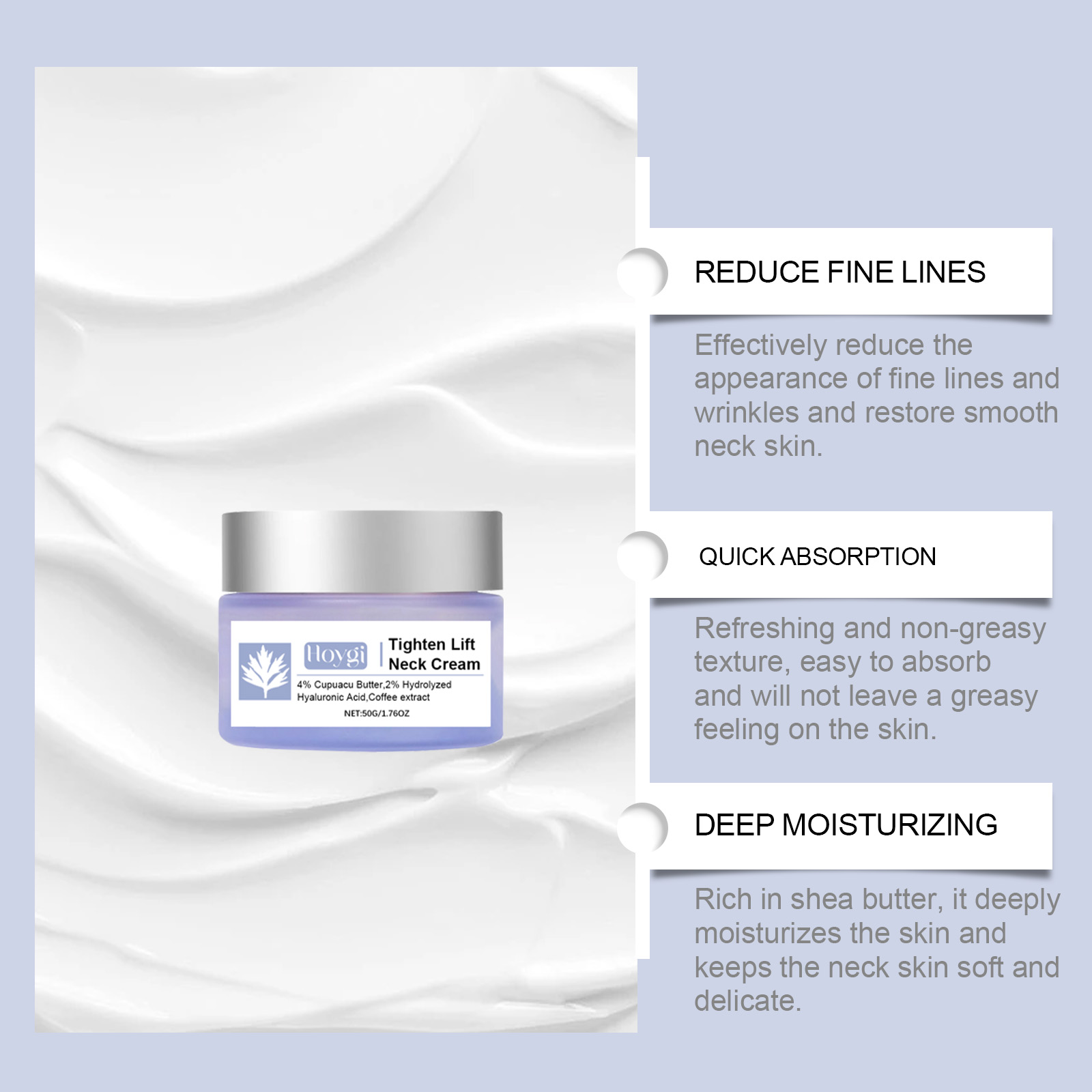 我们的颈部护理霜含有甘油、矿油。它可以帮助恢复皮肤的柔软和光滑,使颈部皮肤更紧致,更有弹性,展现你的年轻容颜。它的使用方法很简单:1.清洁皮肤并保持干燥。2.将本品均匀涂抹于颈部肌肤。3.轻轻按摩至吸收。富含乳木果油,深层滋润肌肤,保持颈部肌肤柔软细腻。配方中的成分有助于紧致颈部皮肤,减少松弛。