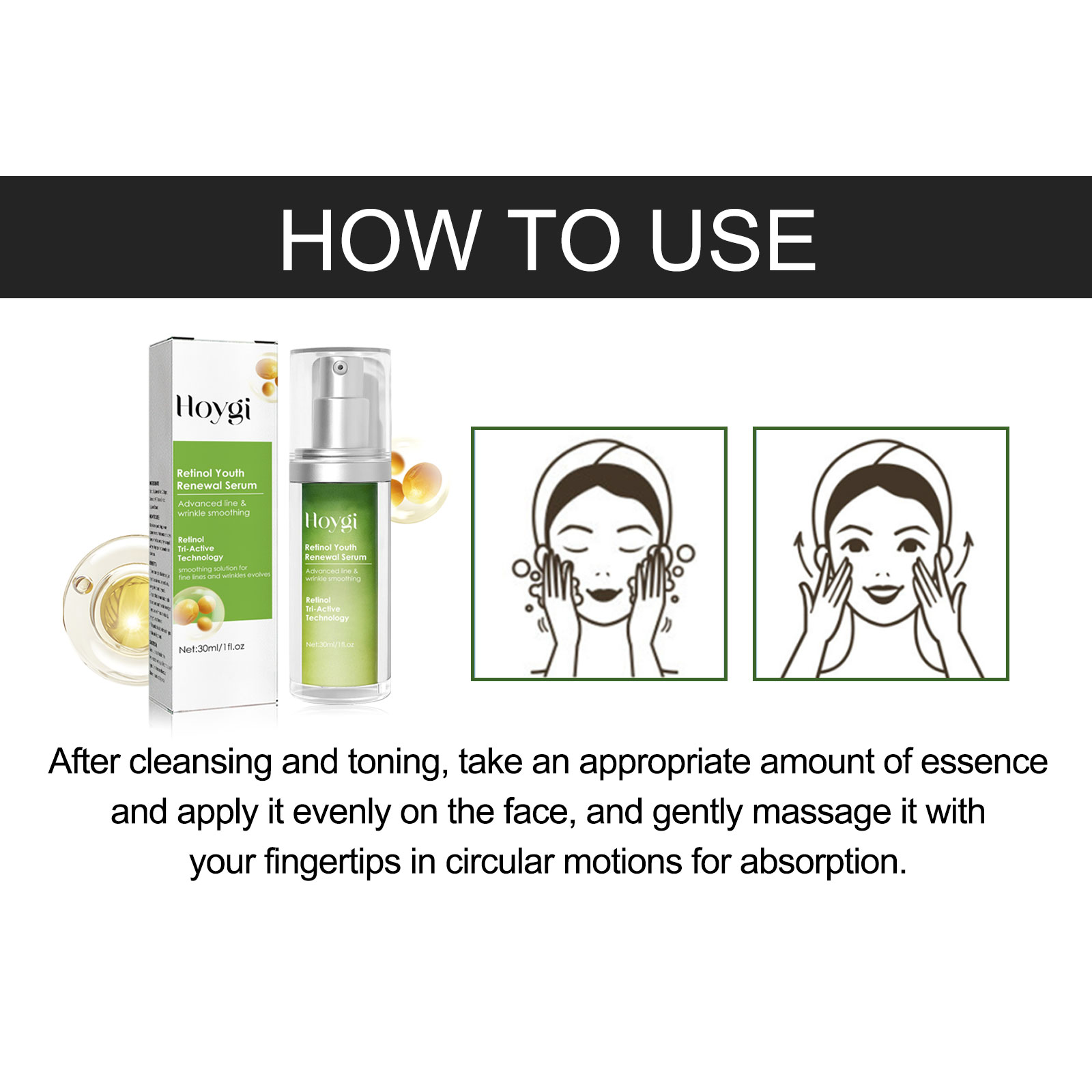 我们的视黄醇精华液含有神经酰胺NP、番茄提取物、大豆提取物。它可以用于细纹和皱纹的平滑溶液进化。它的使用方法很简单:洁面、调理好后,取适量精华液均匀涂抹于面部,用指尖轻轻按摩打圈以吸收。并且可以有效滋养面部,让面部更加光滑。