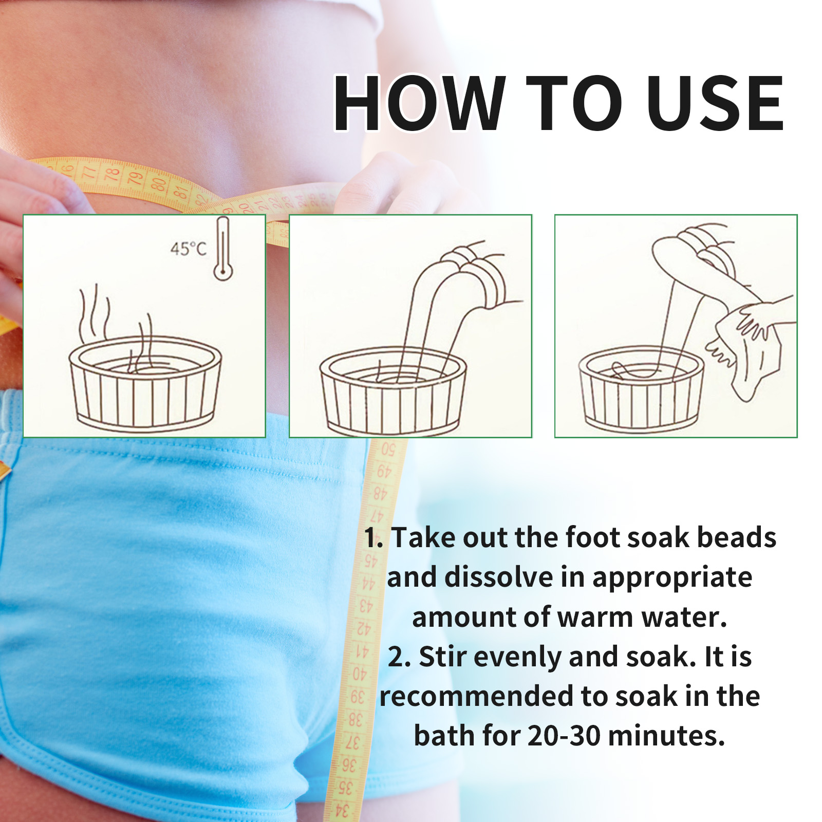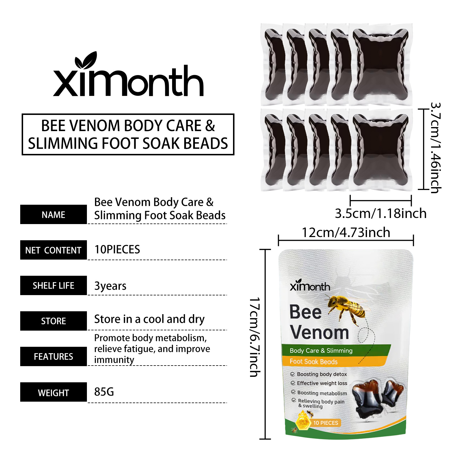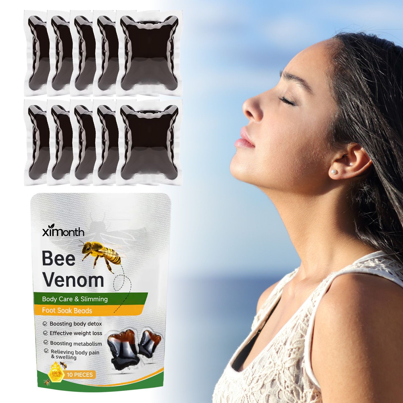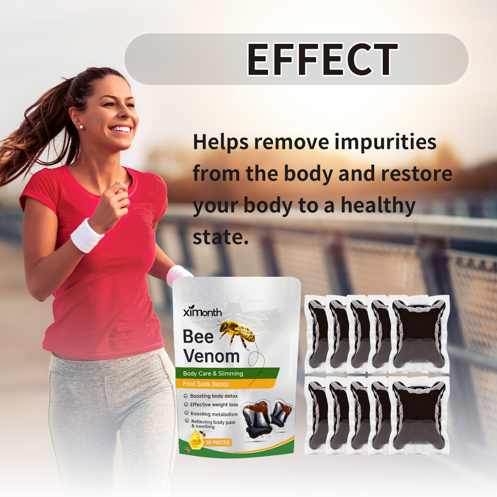 我们的泡脚凝珠含有蜂毒、红花提取物、生姜提取物。它可以有助于清除体内杂质,使身体恢复健康状态;有缓解疲劳和使你的身体年轻的作用。它的使用方法很简单:1. 取出泡脚珠,用适量温水溶解。2. 搅拌均匀,浸泡。建议在浴缸中浸泡20-30分钟。帮助清除体内杂质,使身体恢复健康状态。它可以帮助促进新陈代谢,恢复你苗条的身材,提高你的自信。