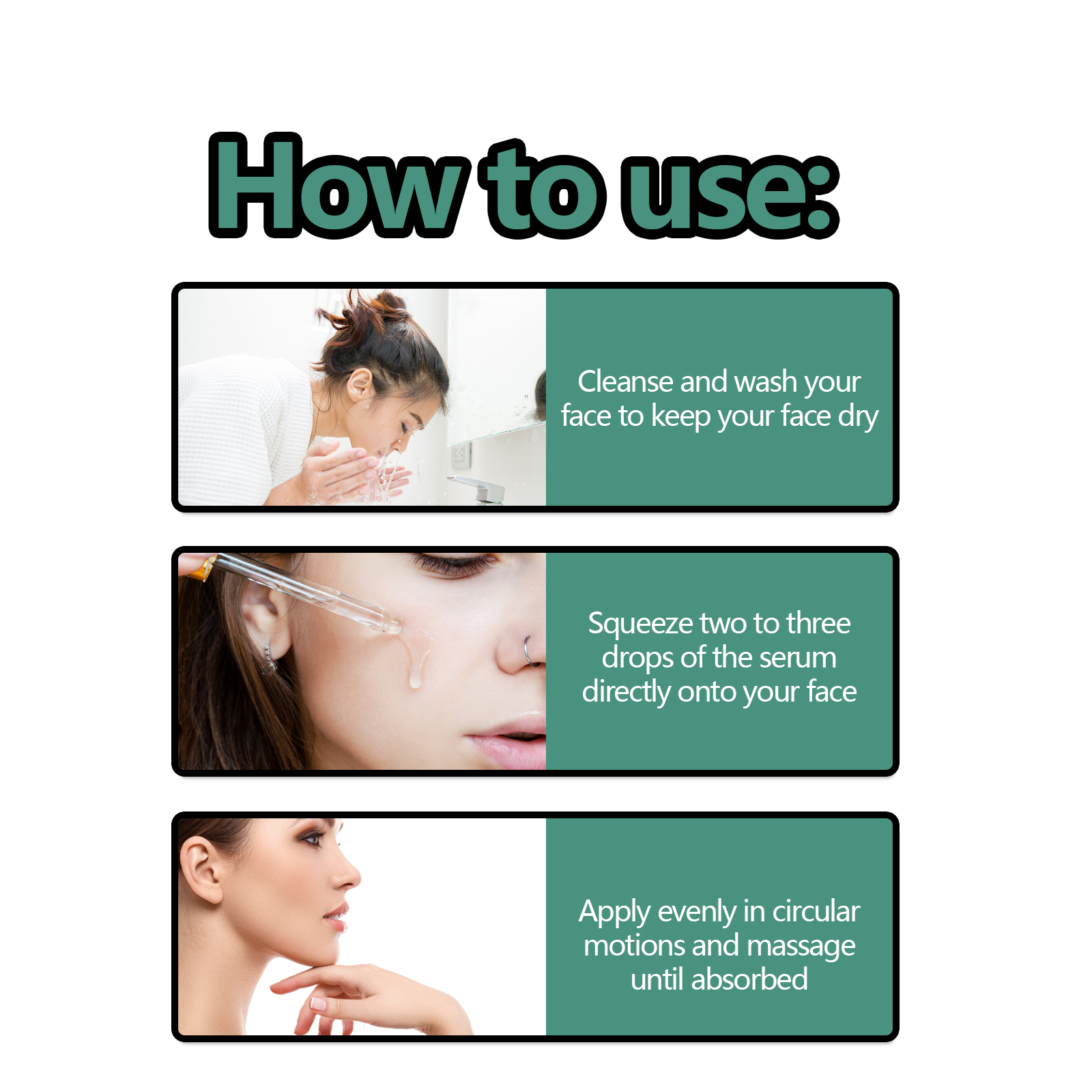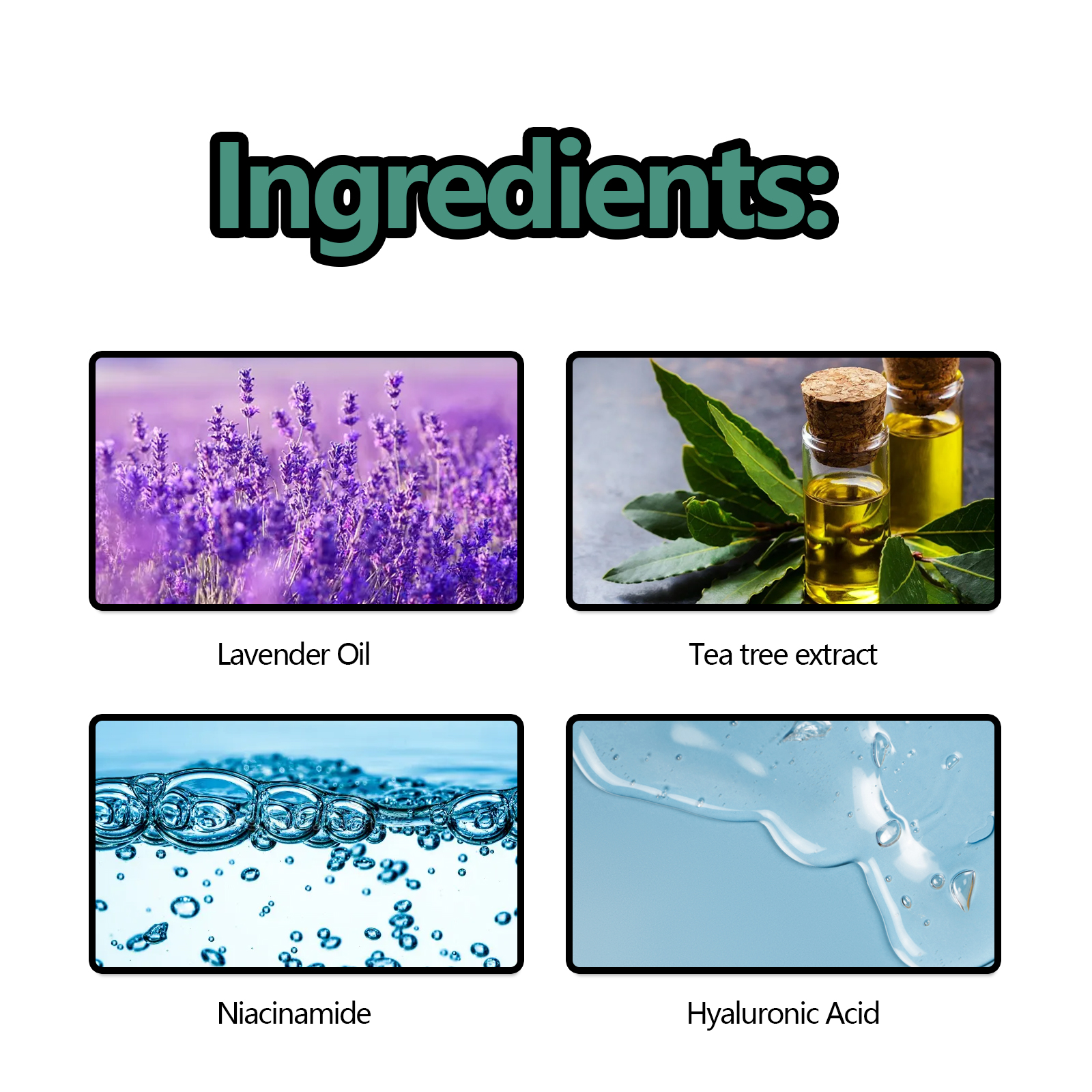 我们的痘痘精华含有薰衣草油、茶树提取物、烟酰胺。它可以清洁和收缩毛孔,减少痤疮、黑头、闭口、白头等。它的使用方法很简单:清洁面部,保持面部干爽。挤出两到三滴精华液直接涂在脸上。以圆周运动的方式均匀涂抹,并持续按摩直至完全吸收。并且可以使皮肤更加细腻光滑。
