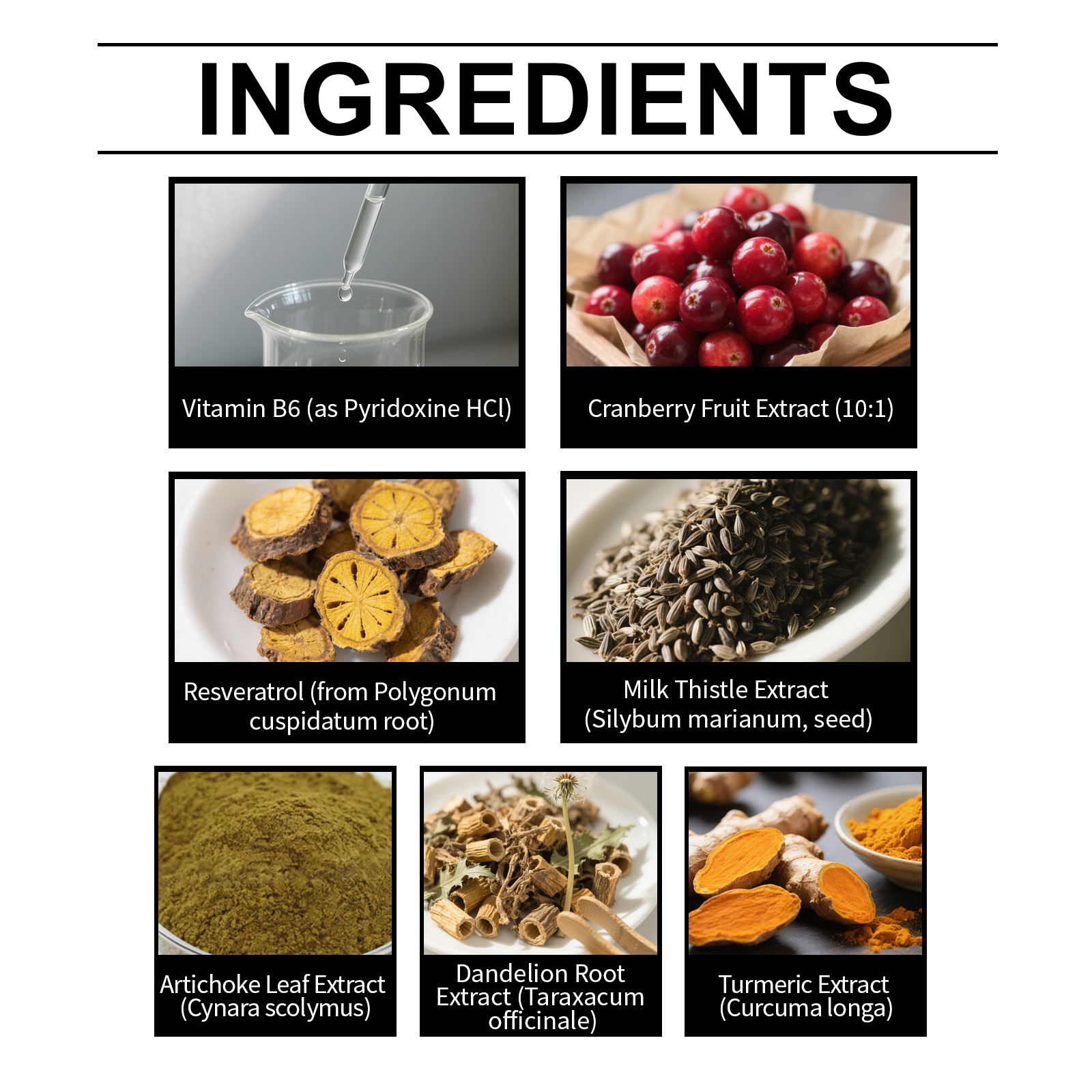 我们的肝脏护理滴剂(入口)含有白藜芦醇(来自虎杖根)、奶蓟提取物(水飞蓟籽)。它可以帮助改善消化和营养吸收。它的使用方法很简单:食用前请摇匀,每次1-2滴,每天1-2次。并且可以增强免疫力功能和整体健康。