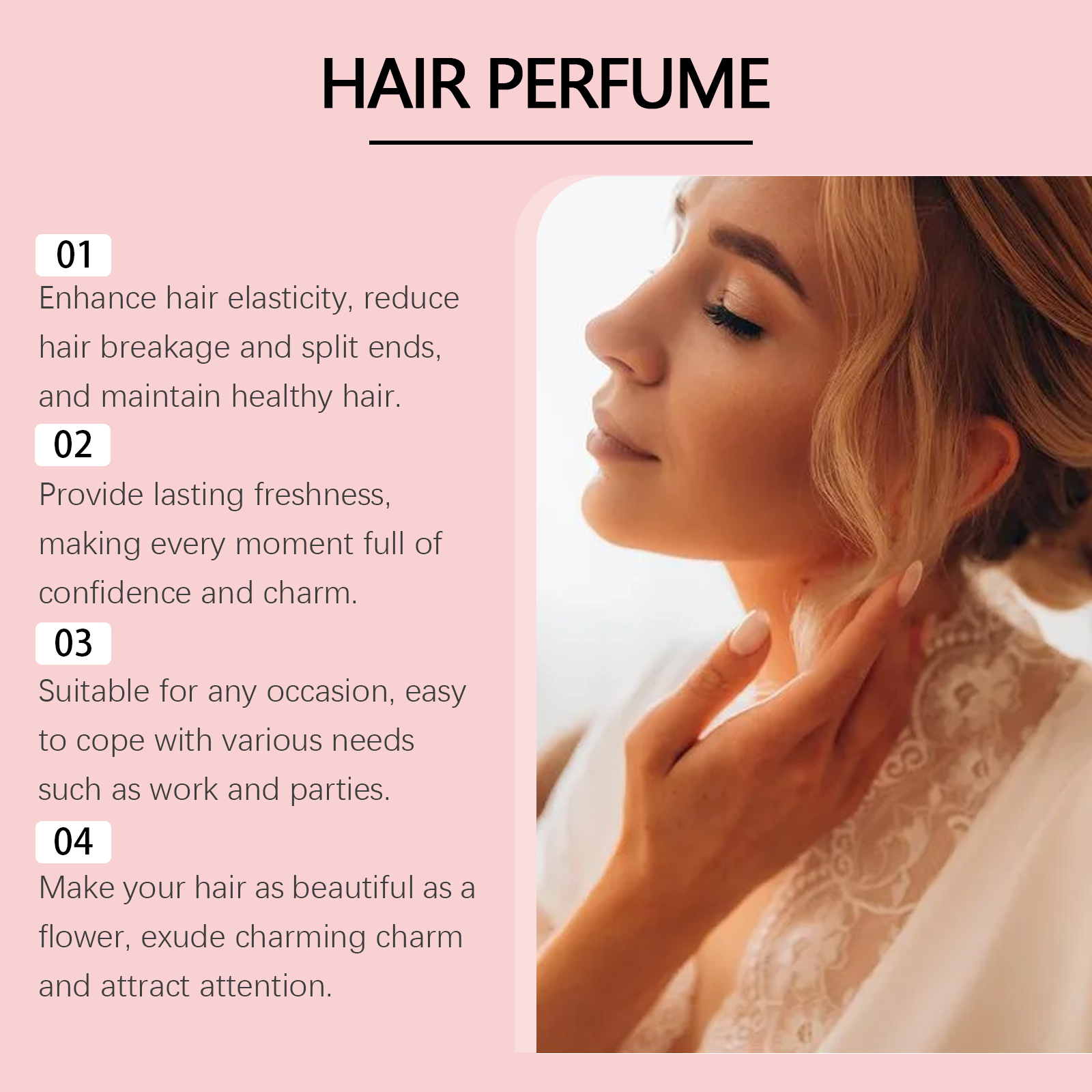 我们的女士头发香水喷雾(花香味)含有蓖麻籽油、琥珀提取物、茉莉花提取物。它可以深层滋养头发,增强光泽和柔软。滋润发根,减少头发断裂和分叉。保护头发免受环境损害,改善整体健康。它的使用方法很简单:1.打开瓶盖。2.按下喷嘴,把香水喷在头发上。持久的香味,让您的秀发散发出迷人的气质。帮助改善干燥卷曲,恢复头发光泽。