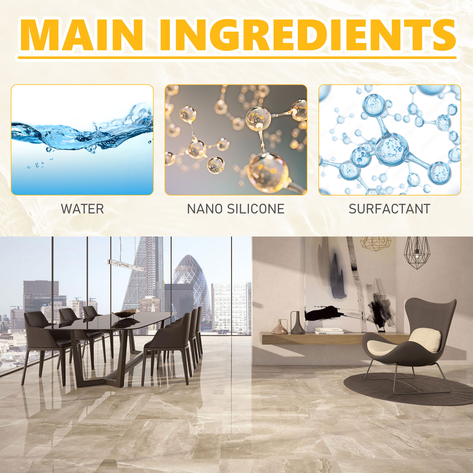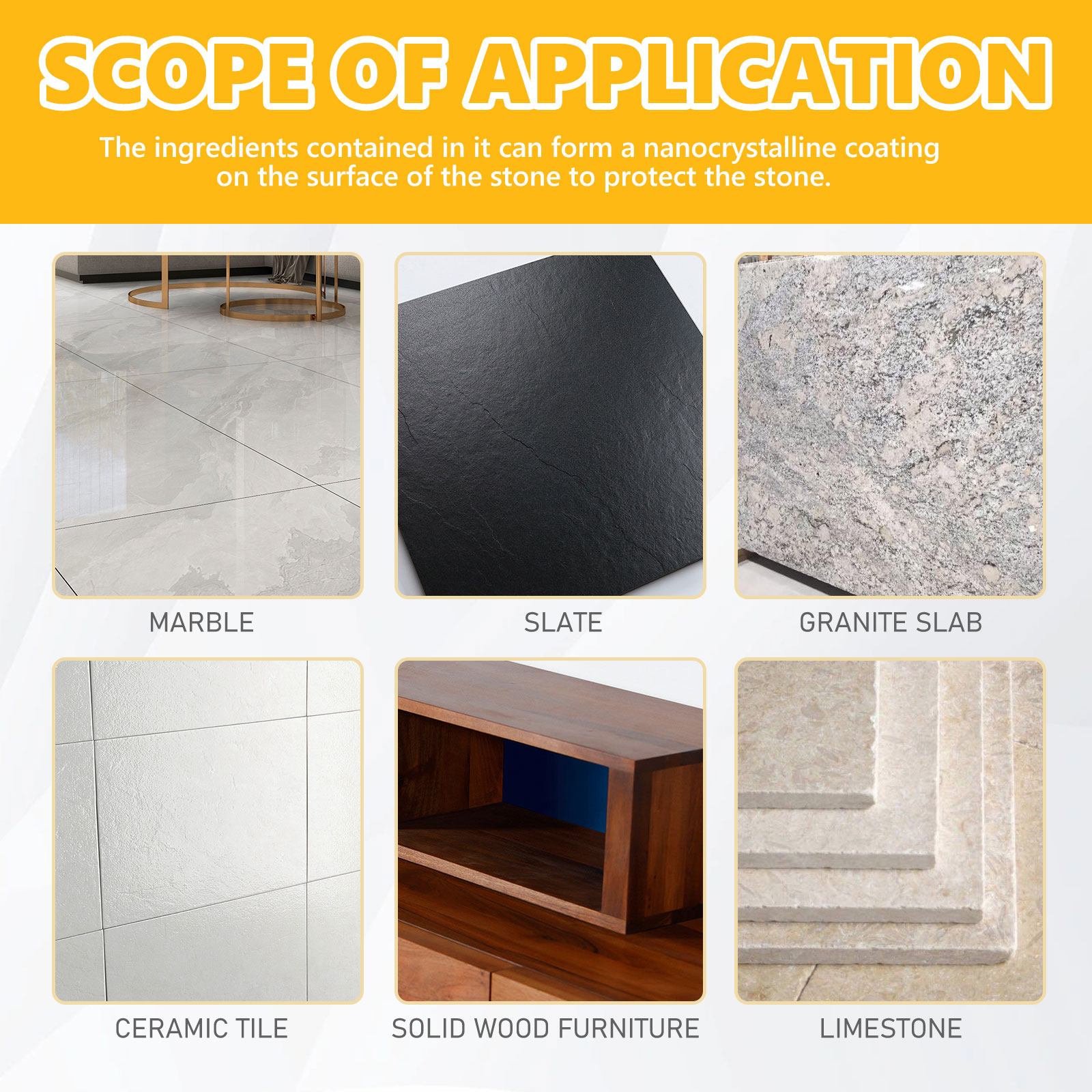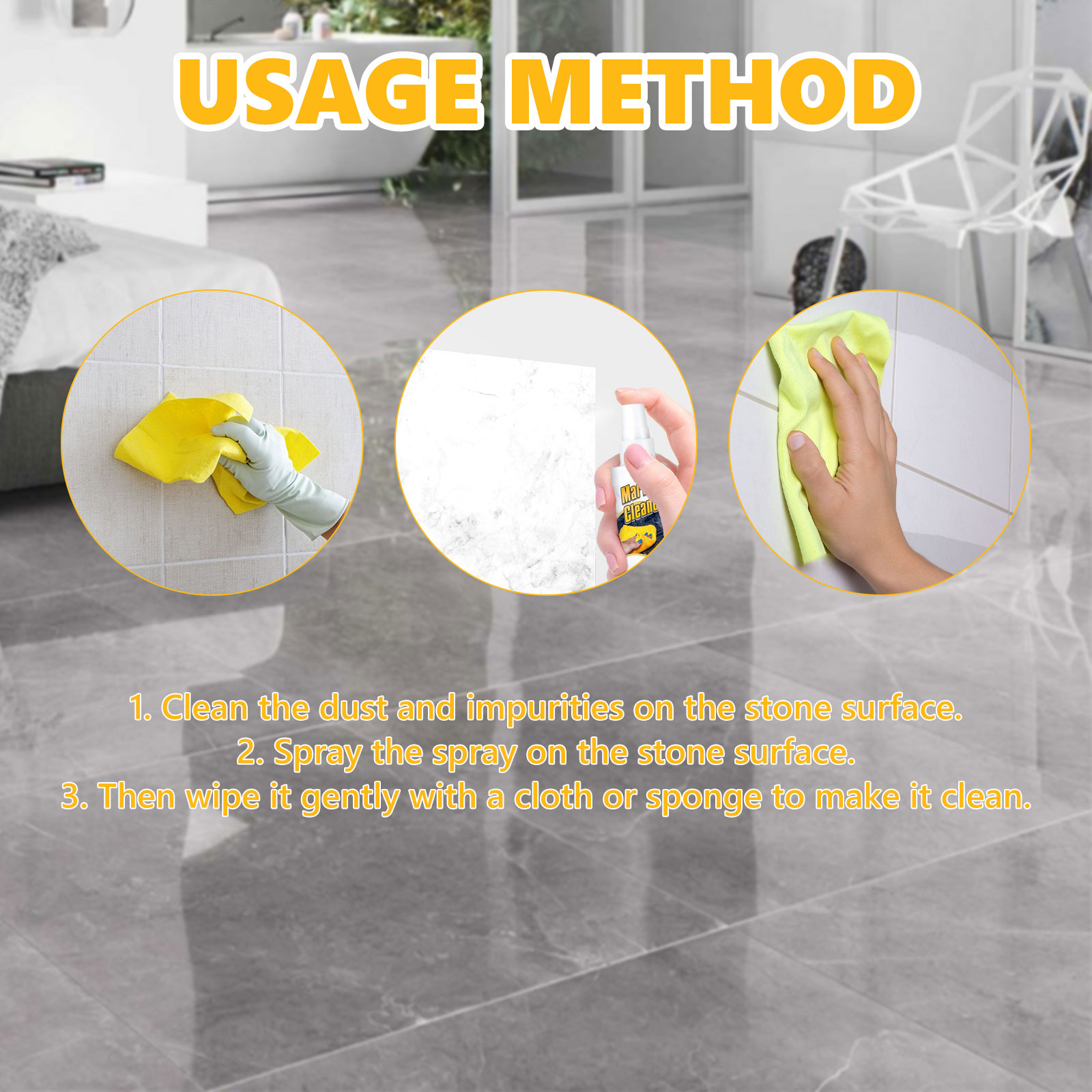 我们的大理石清洁剂含有纳米有机硅、表面活性剂。它可以帮助去除石材表面的黄色氧化层,去除顽固的硬水点和沉淀物。它的使用方法很简单:1.清洁石材表面的灰尘和杂质2 .将喷雾喷在石材表面3 .然后用布或海绵轻轻擦拭,使其干净。并且可以恢复大理石的光泽。