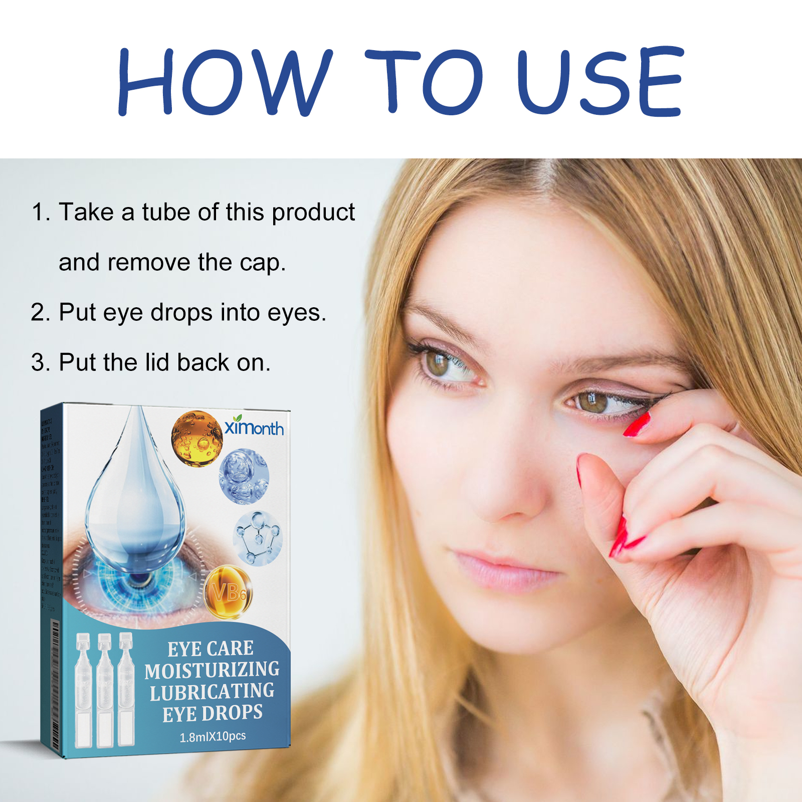 我们的滴眼液含有牛磺酸、透明质酸钠、天冬氨酸。它可以为眼球提供必要的水分和营养。滋润和冷却眼睛,保持眼睛健康,增强视力。它的使用方法很简单:1. 取一管本品,取下瓶盖。2. 把眼药水放进眼睛里。3. 把盖子盖上。适用于舒缓红眼、干眼症、青光眼、白内障等病症。