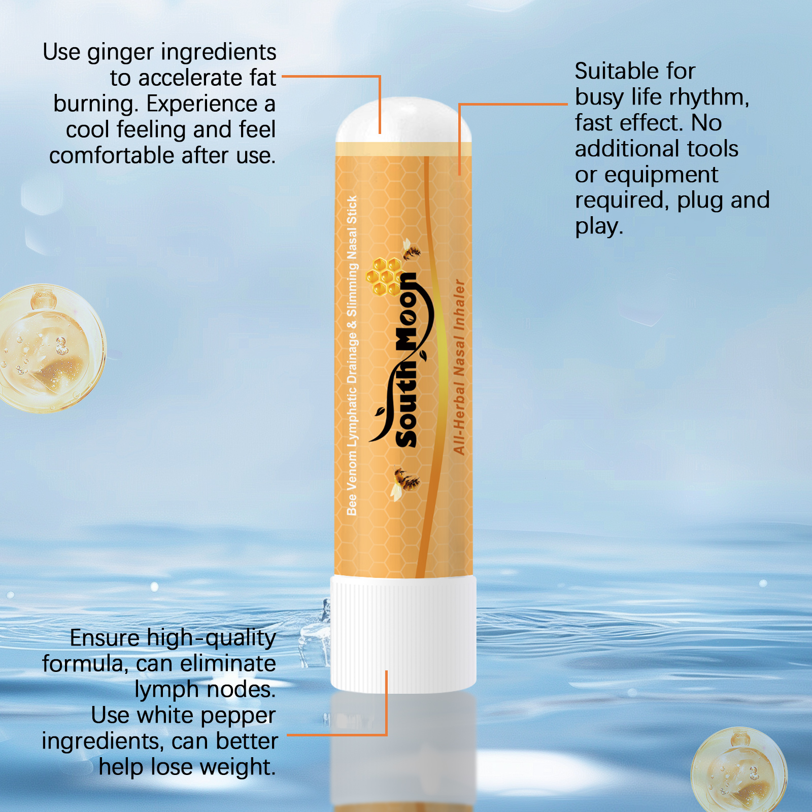 我们的清洁鼻吸管含有蜂毒、生姜、白胡椒。它可以有助于刺激和加速身体的代谢过程。有助于加速脂肪燃烧和保持健康。它的使用方法很简单:将鼻棒插入鼻孔,深吸气,屏住呼吸十秒钟,然后慢慢呼出。帮助加速身体新陈代谢,支持体重管理。持久的公式。持续减肥支持。全面提高生活质量,帮助改善整体健康状况。