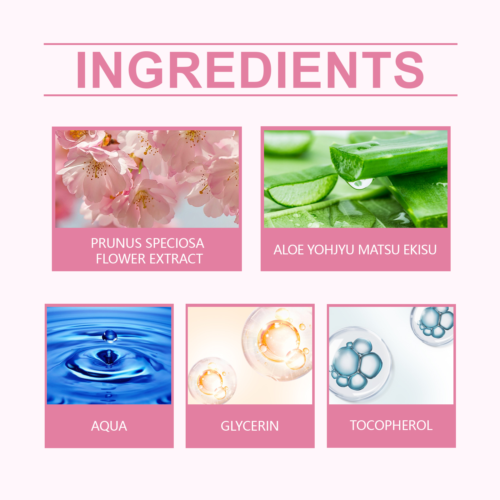 樱花提取物、甘油、生育酚