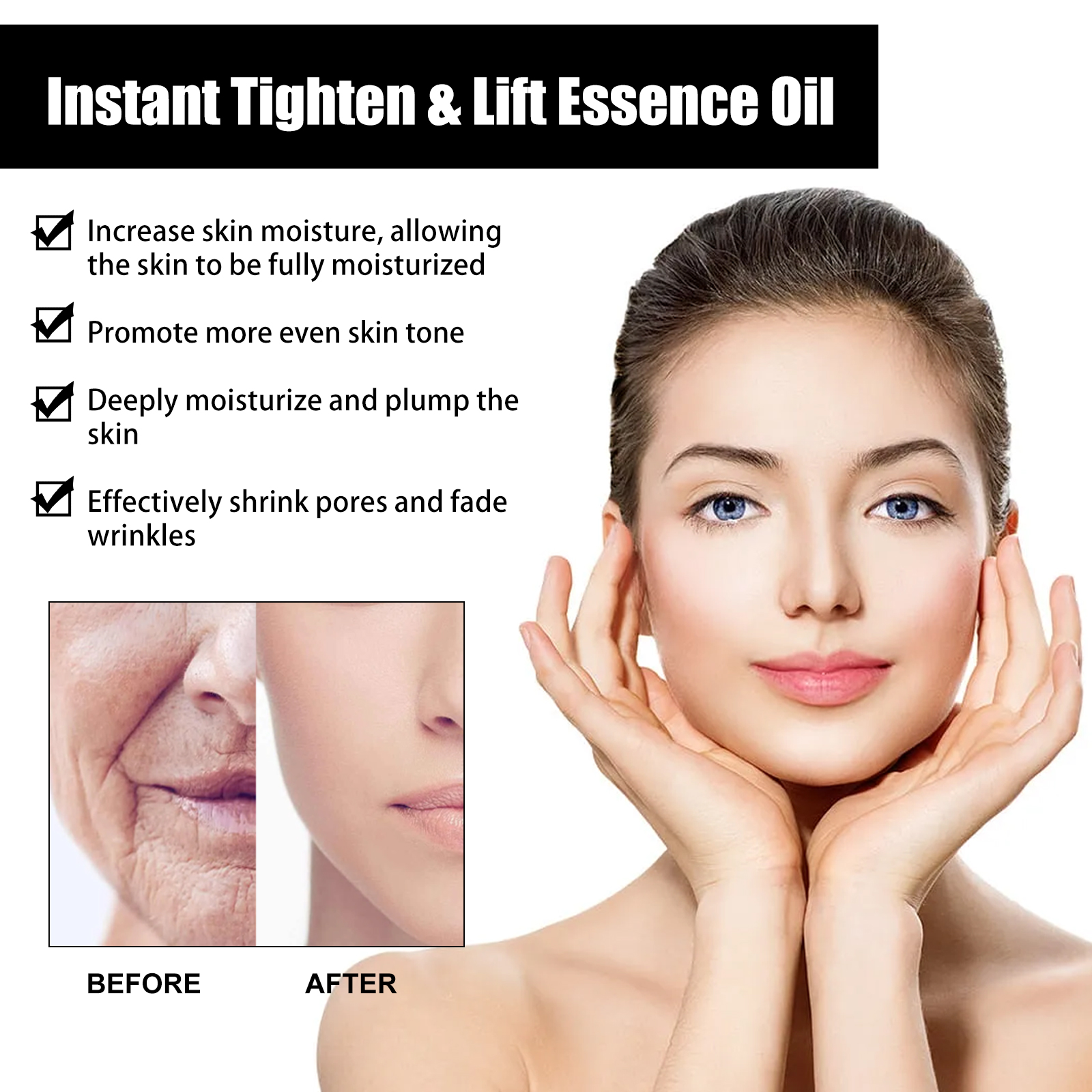 我们的面部即时紧致提拉精油含有甘油、维生素C、透明质酸。它可以有效增加肌肤水分,充分滋润肌肤,令您的肌肤时刻保持水润,均匀肤色,有效收缩毛孔,淡化皱纹。它的使用方法很简单:清洁面部并擦干,取适量精油均匀涂抹于肌肤,用手轻轻打圈按摩至吸收即可。深层滋润丰盈肌肤,促进胶原蛋白的合成,从而减少细纹的出现。