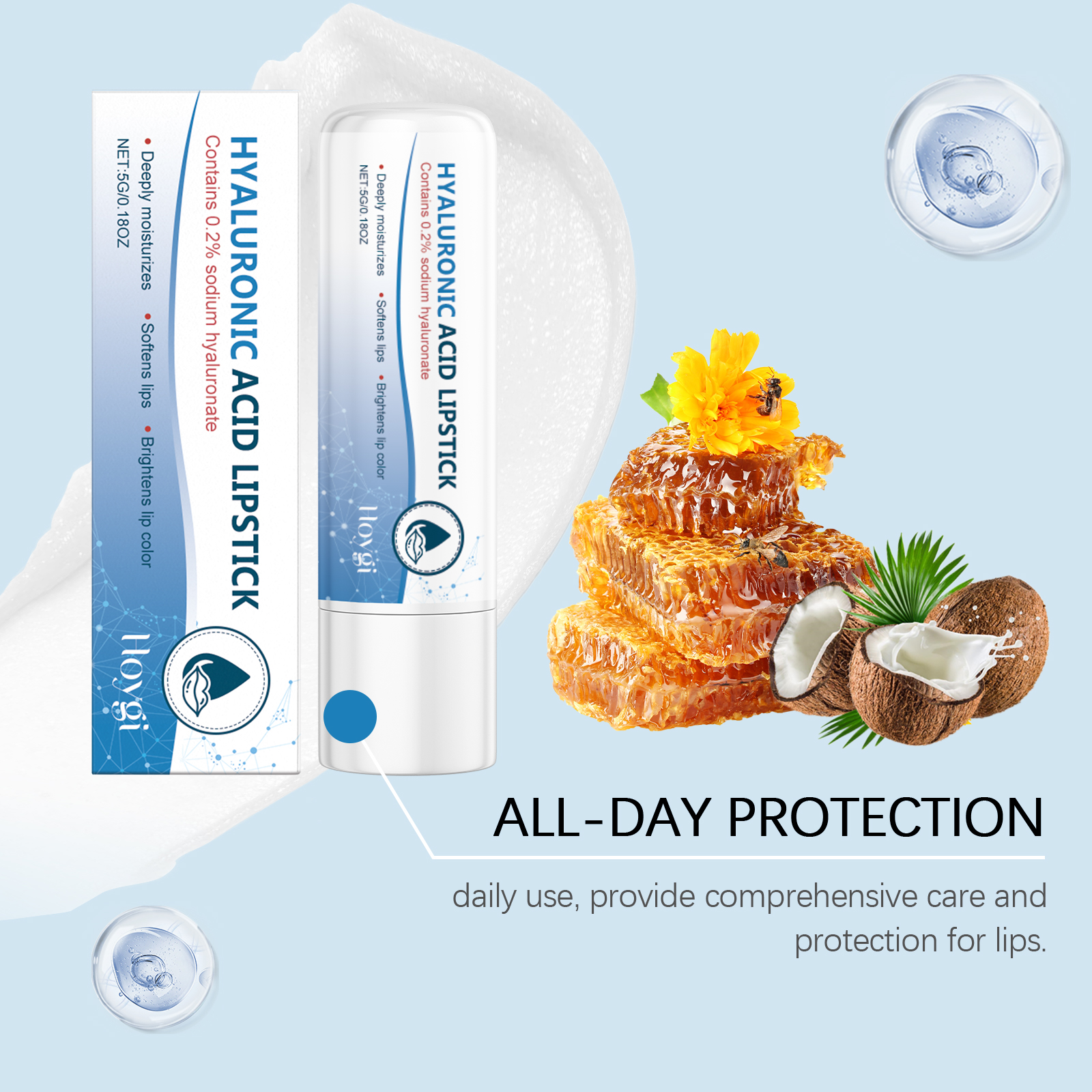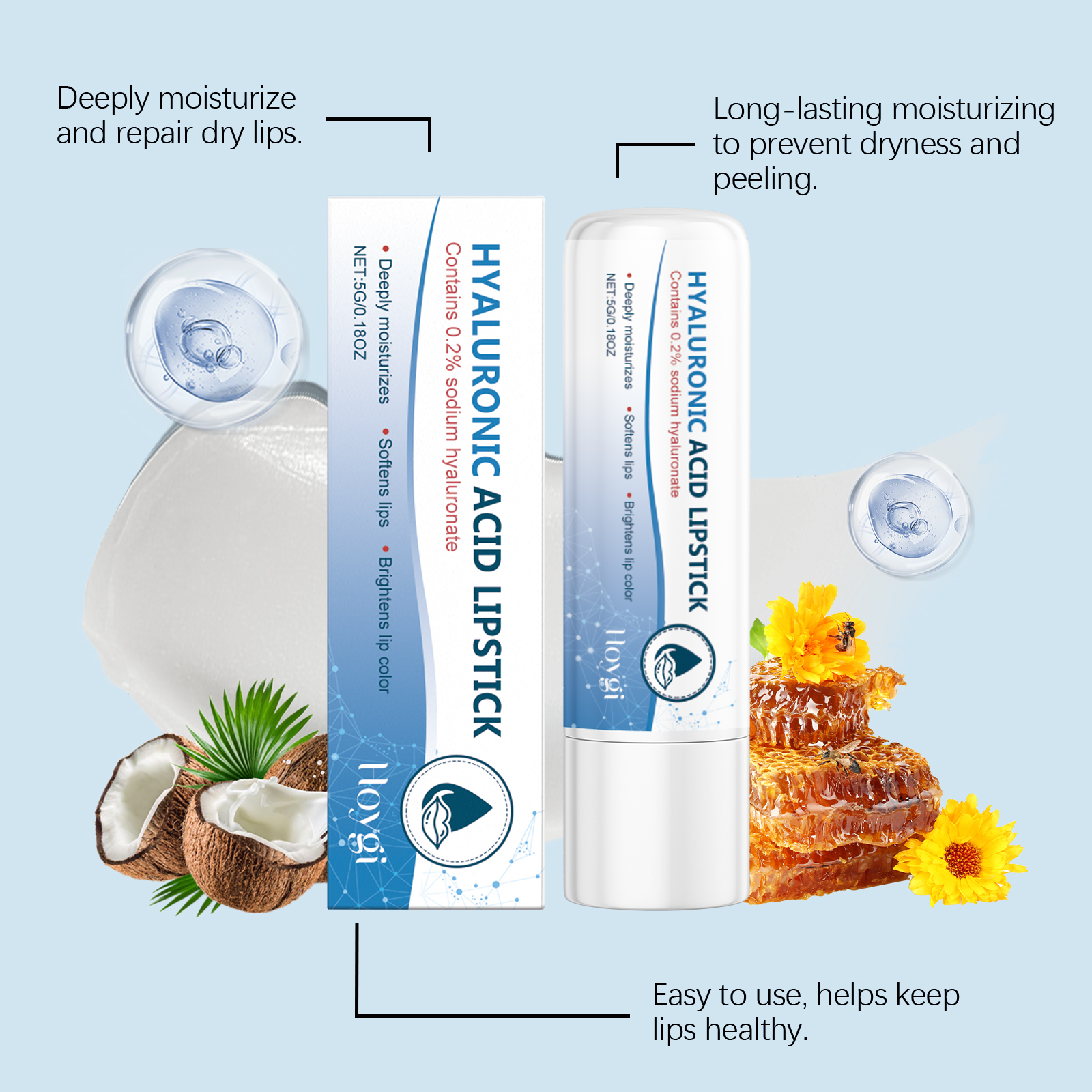 我们的透明质酸唇膏含有尿囊素、生育酚、椰子油。它可以帮助唇部长时间保持滋润,防止干燥和脱皮。它的使用方法很简单:用温水轻轻洗嘴唇,保持干燥。取适量本品均匀涂于唇部。并且可以日常使用,为唇部提供全面的护理和保护。