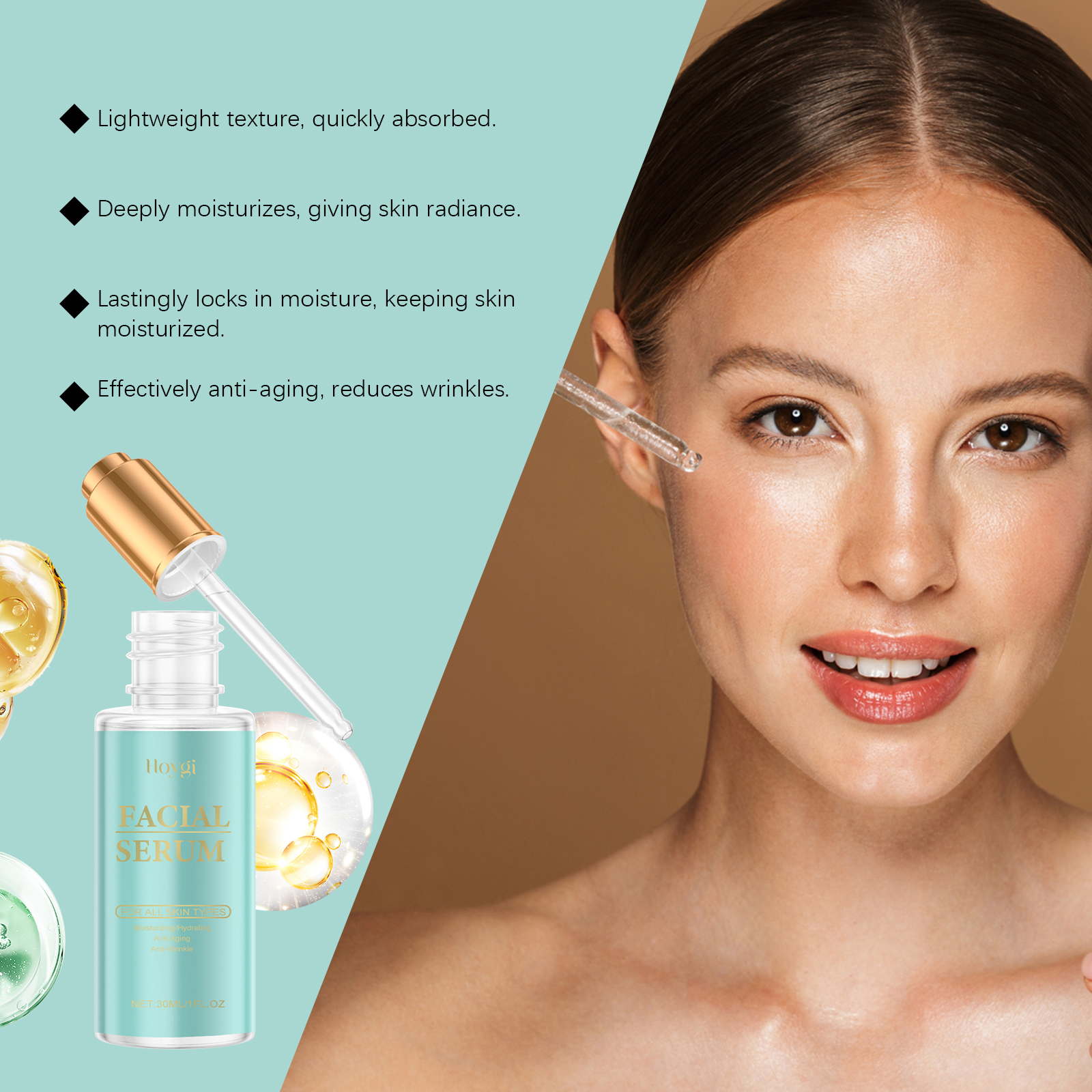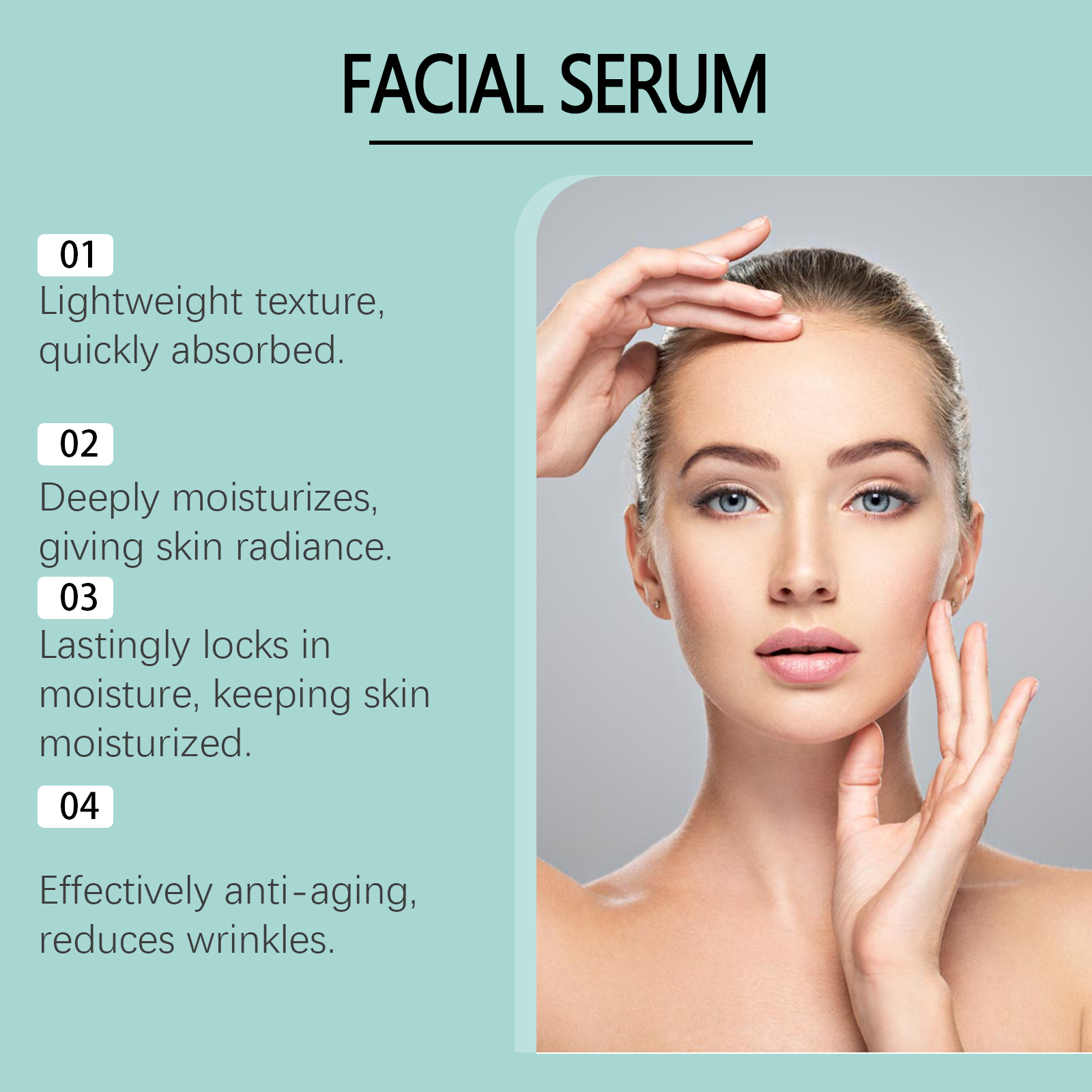 我们的面部精华液含有羟乙基纤维素、乙基己基甘油、芦荟叶提取物。它可以有助于抵抗衰老,减少皱纹和细纹。它的使用方法很简单:彻底清洁皮肤并擦干。取适量本品均匀涂抹于面部肌肤。轻轻按摩以促进更好的吸收。并且可以持续使用可以显著改善肤色,使皮肤更加均匀。