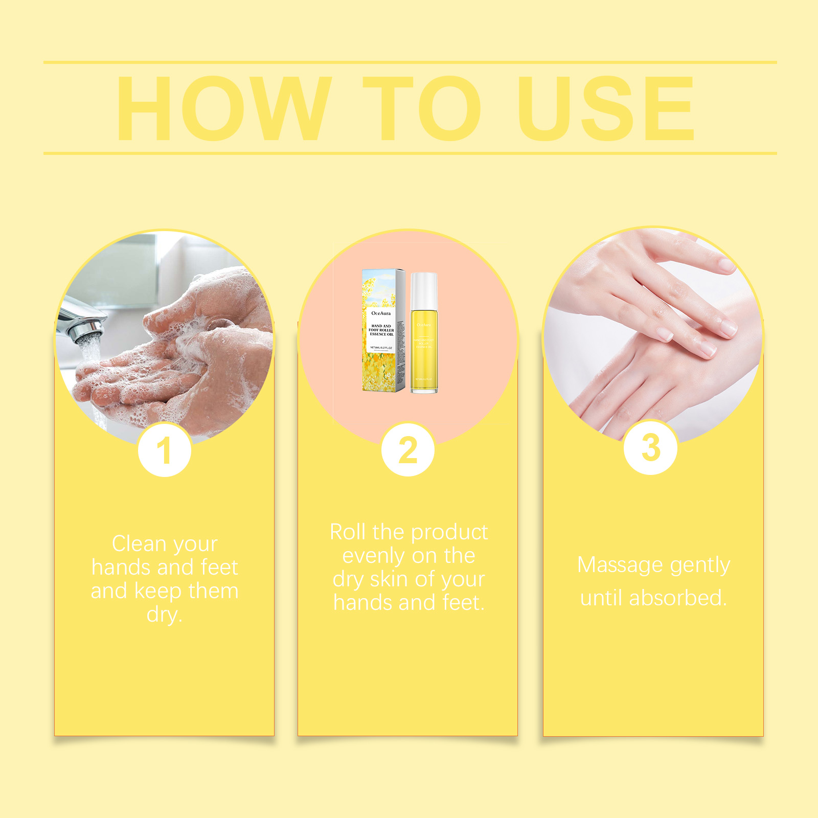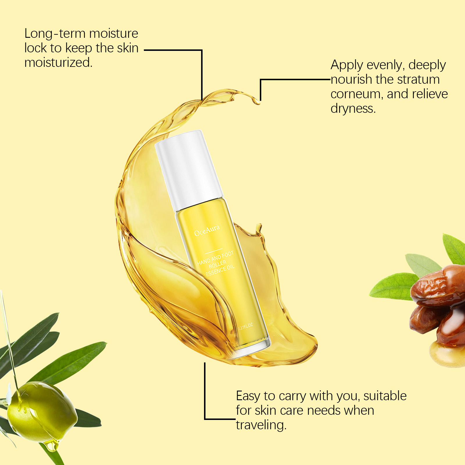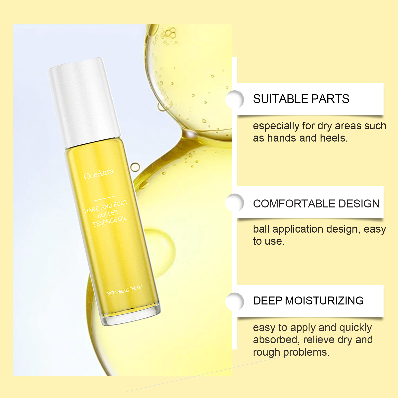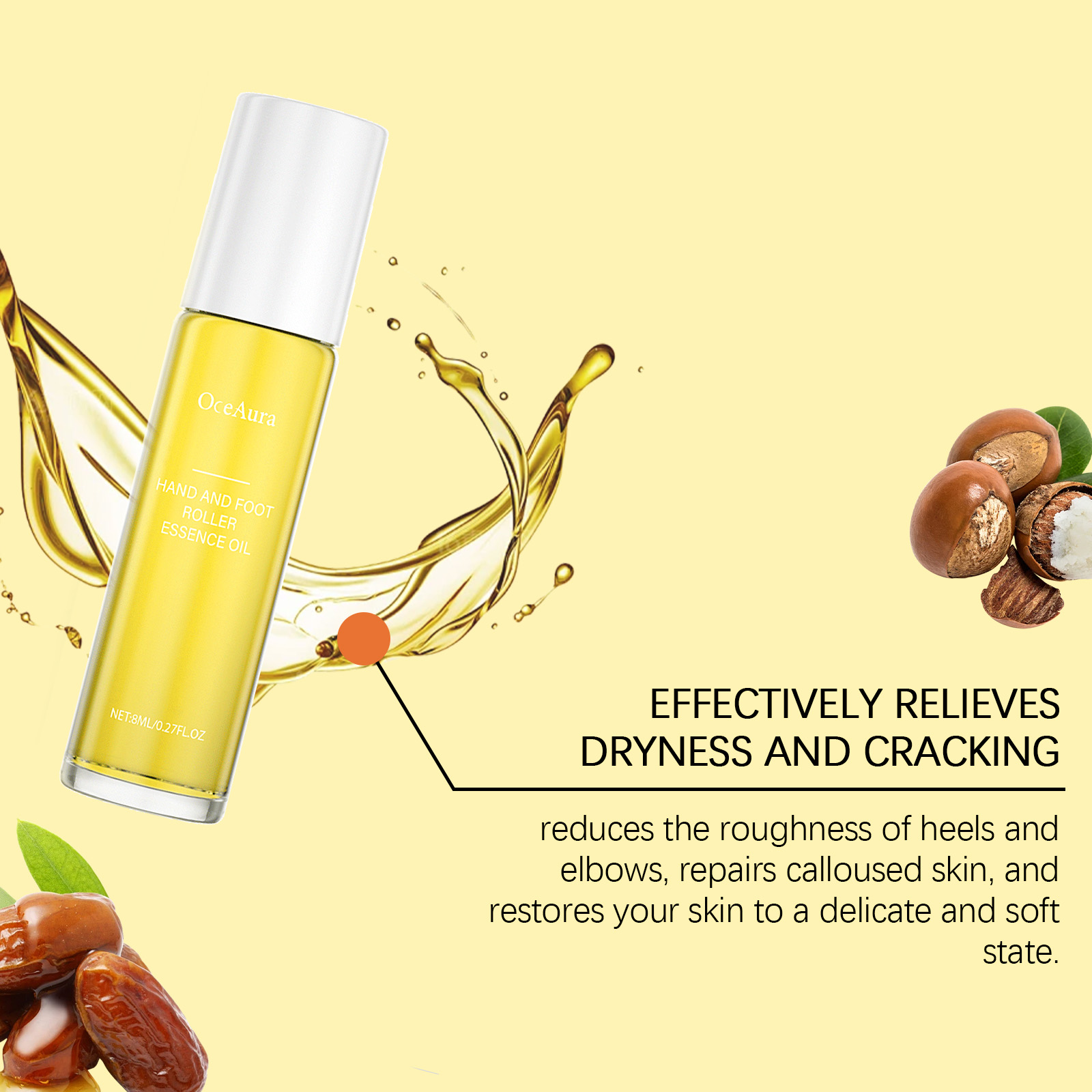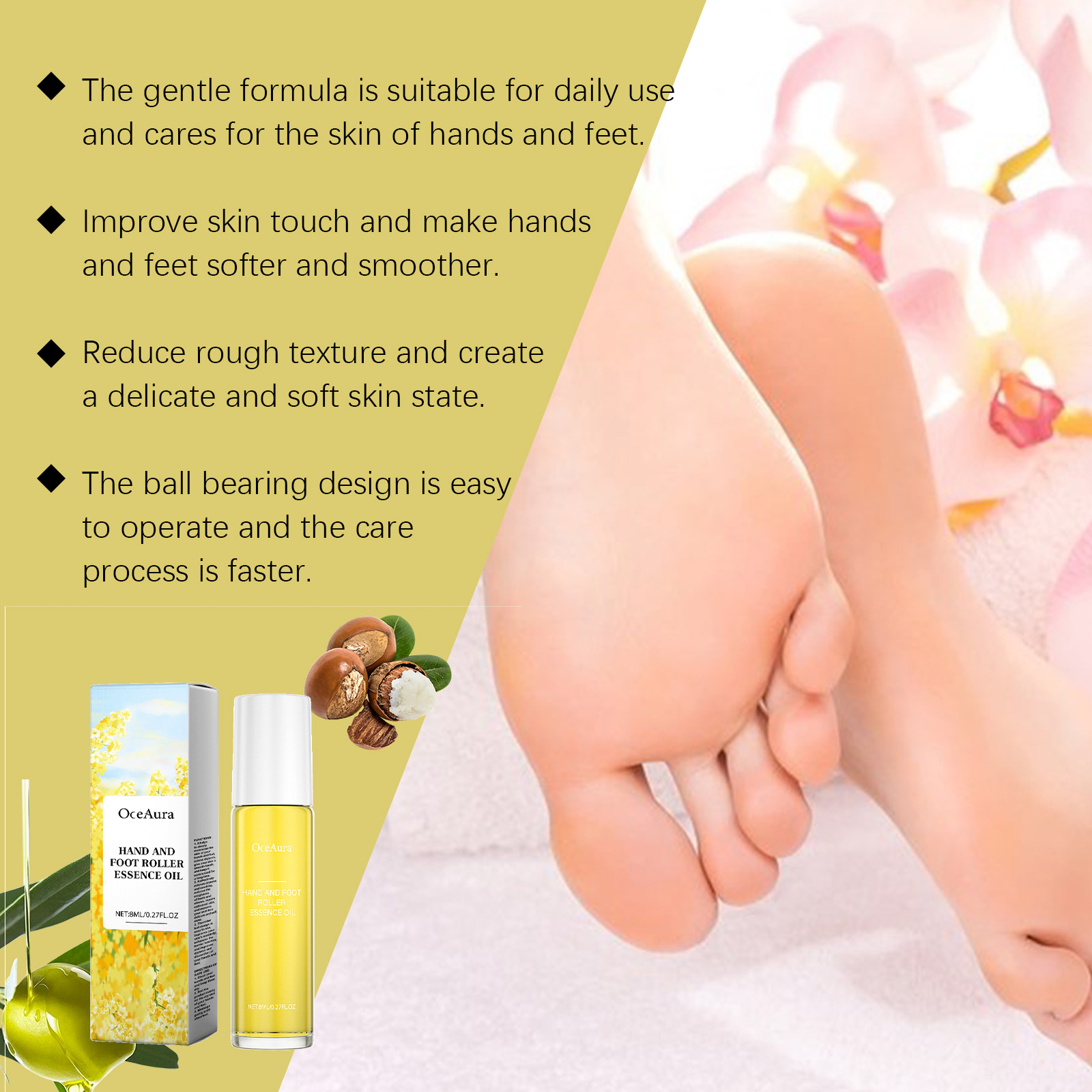 我们的手足护理滚珠精油含有矿油、丁羟甲苯。它易于使用,吸收快缓解干燥粗糙问题。温和的保湿成分,带来光滑舒适的护肤体验。它的使用方法很简单:清洁你的手和脚并保持干燥,将产品均匀地滚在手脚干燥的皮肤上。按摩至吸收。并且可以缓解干燥,给肌肤带来光滑的触感,并长时间保持滋润。