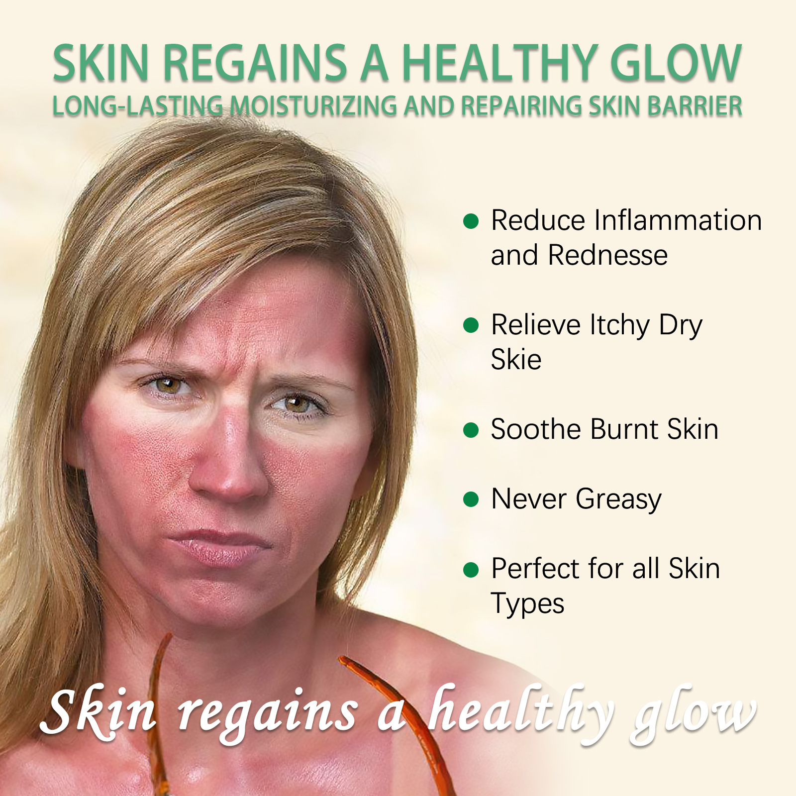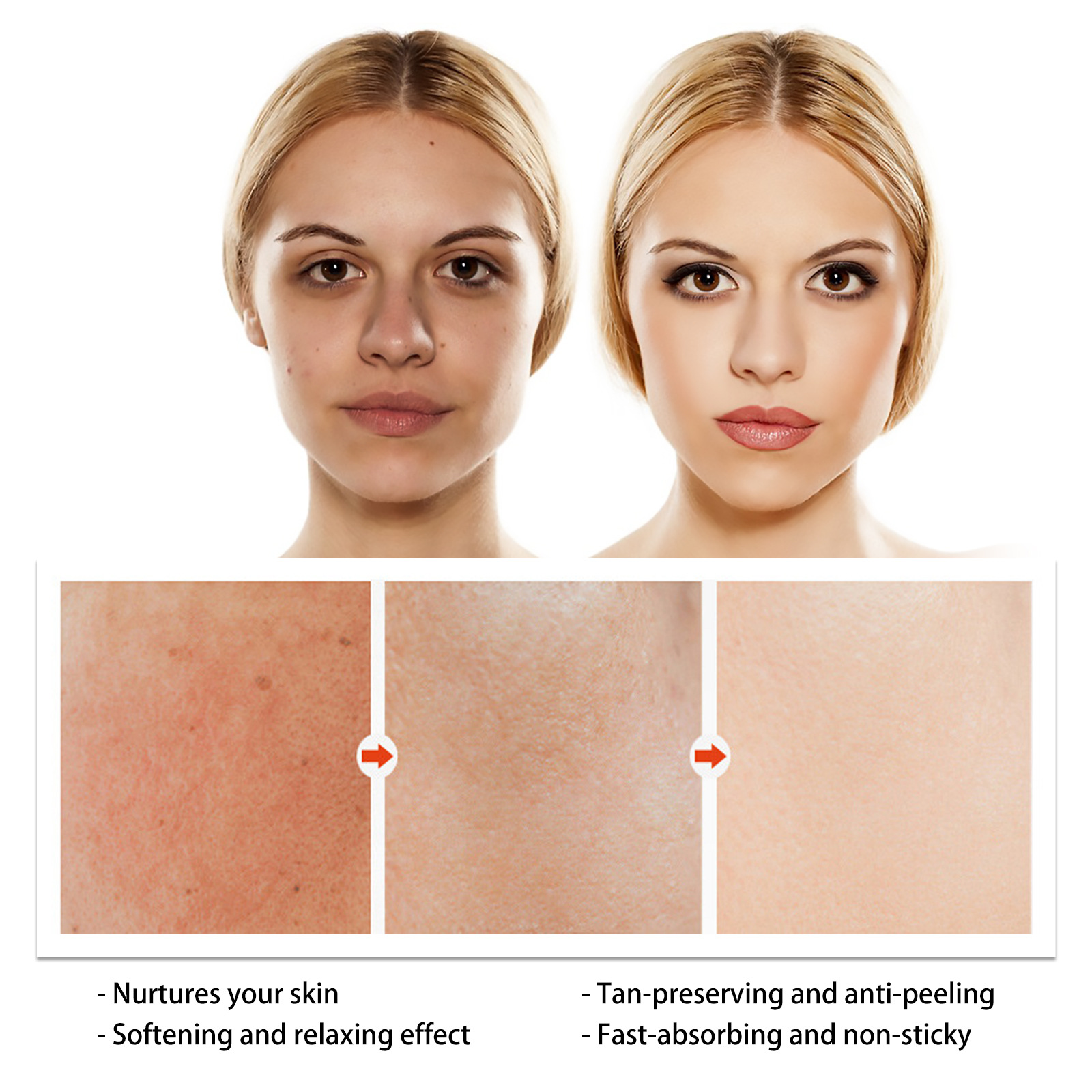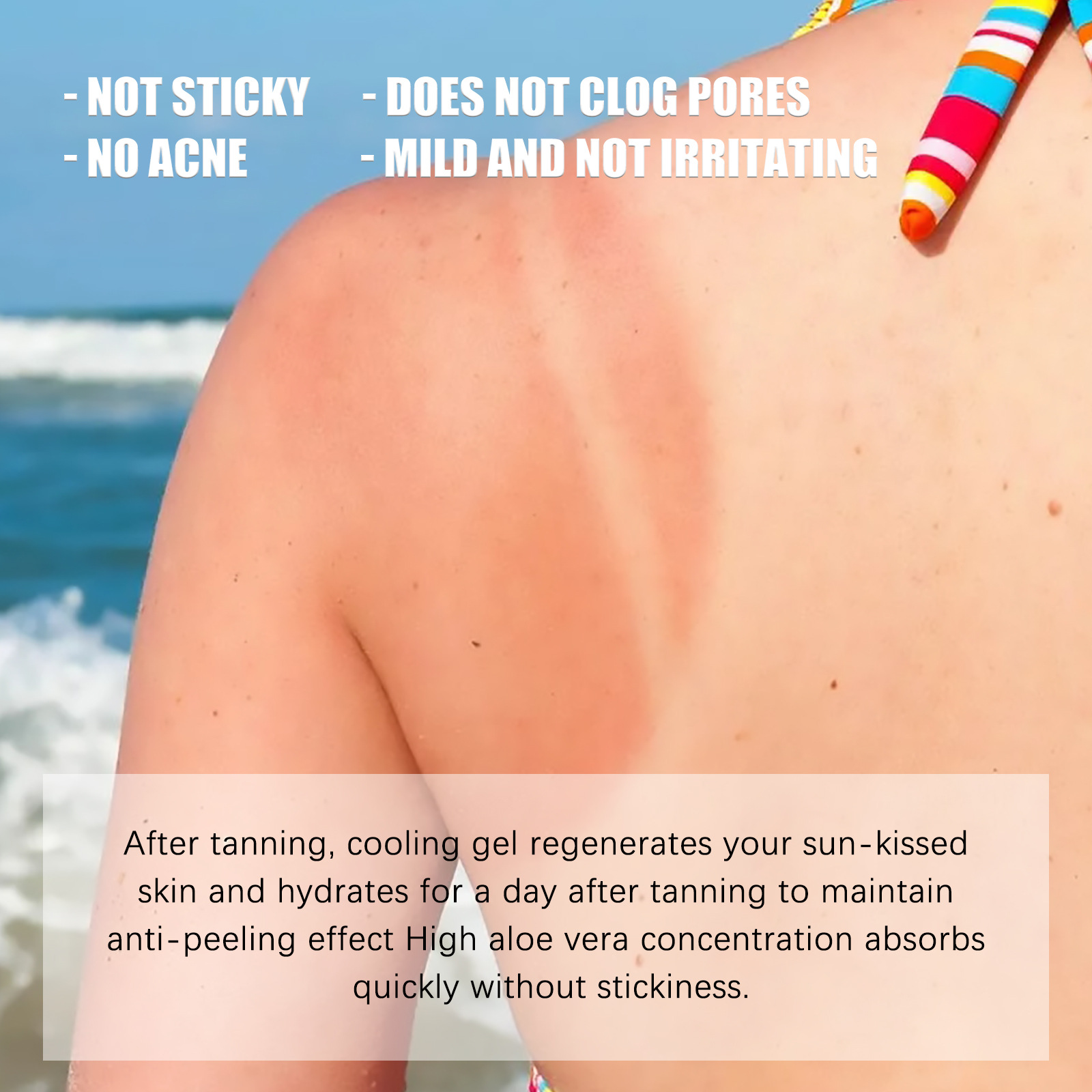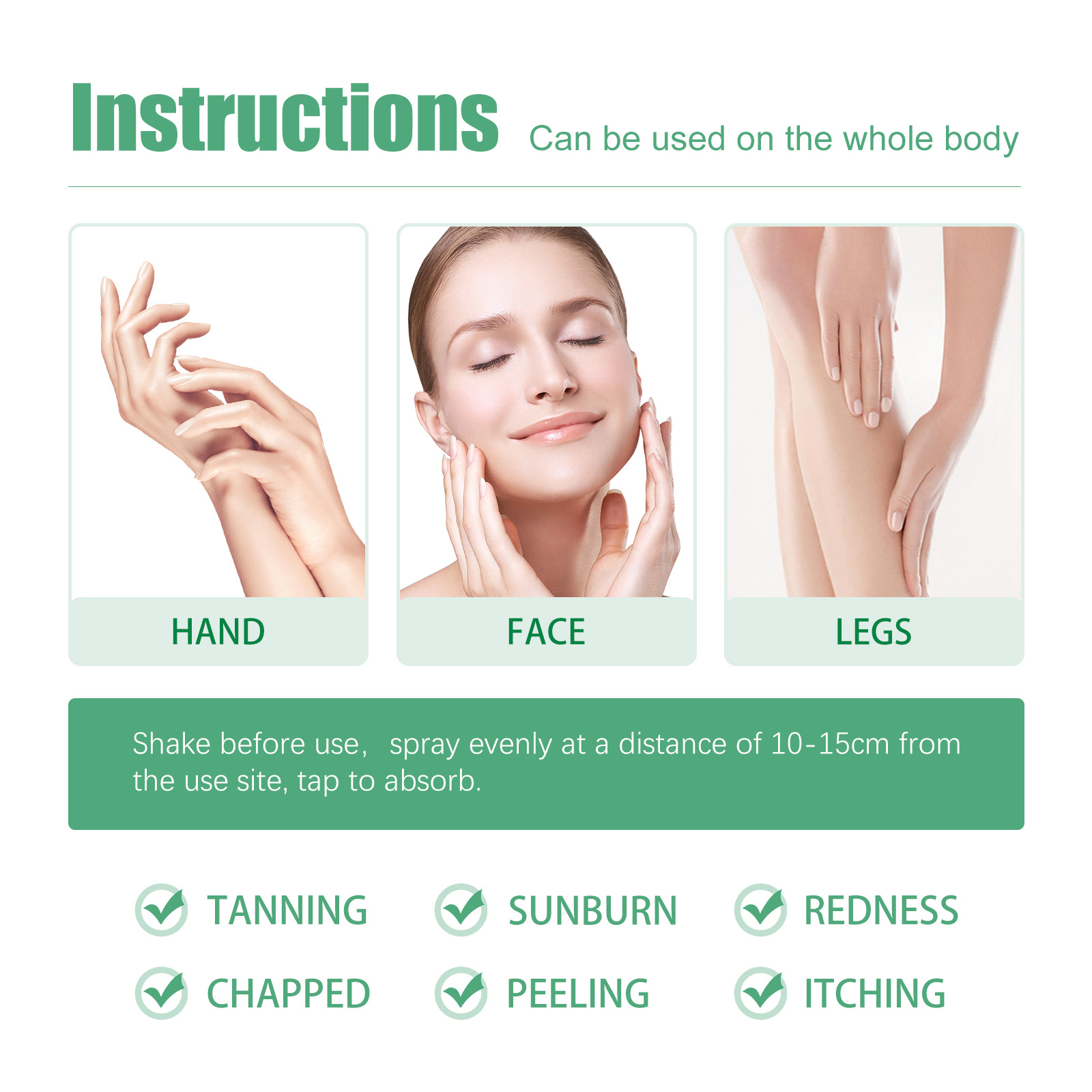 Our Aloe Vera Gel contains aloe vera, vitamin E, vitamin C. It promotes blood circulation, moisturizes and calms the skin, soothes sunburned skin, reduces redness and discomfort, soothes itchy skin, and repairs sensitivity damage. Its use method is very simple: shake well before use, evenly spray at 10-15cm away from the use site, and pat until absorbed. It can relieve skin discomfort after sun exposure, moisturize, repair, soothe and nourish skin.