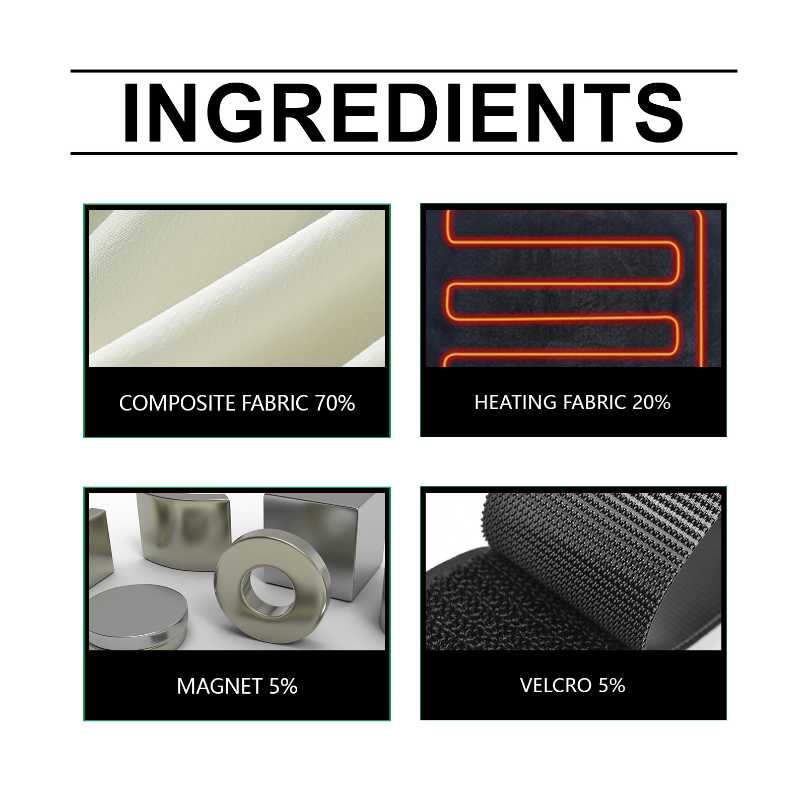 我们的穴位按摩腰带含有复合布70%、发热布20%、磁石5%、魔术贴5%。它可以提供柔软的支撑,确保长时间舒适无压力地穿着。它的使用方法很简单:将产品放在腰部,按摩点与下背部和肾脏区域对齐。用粘扣把皮带紧紧地系在腰上。并且穴位按摩有效帮助减脂过程。